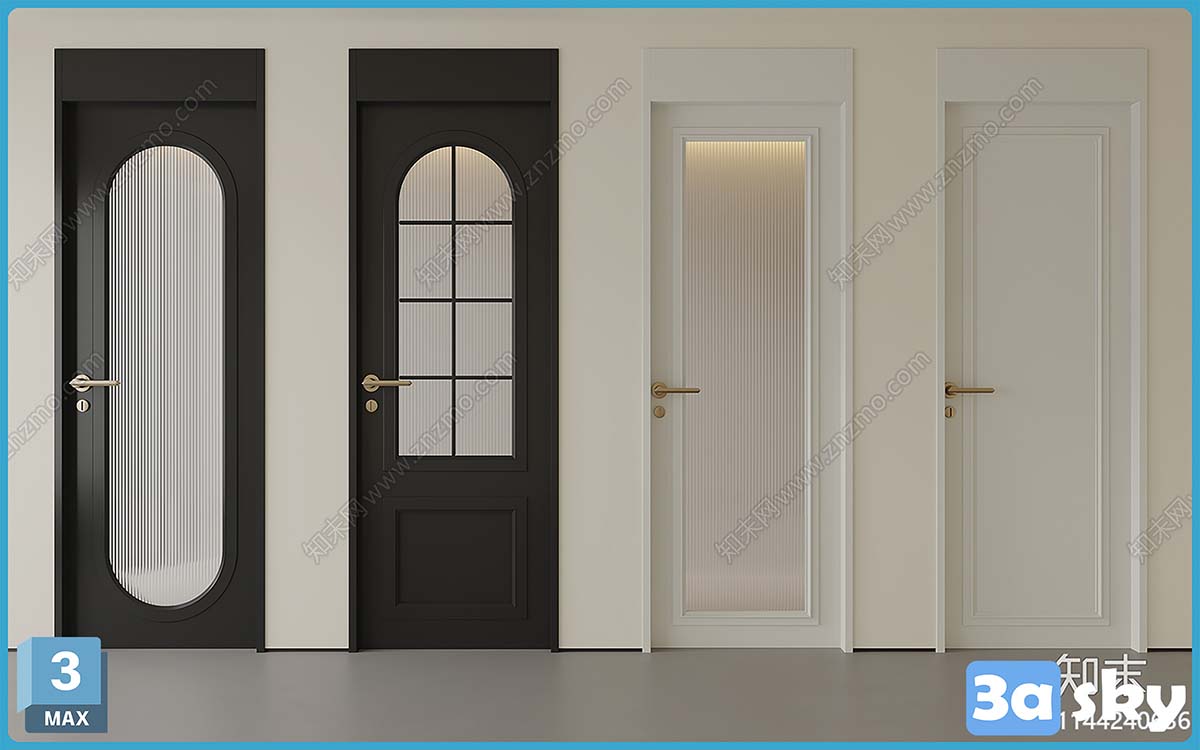 V_CR法式玻璃单开门_卫生间门_厨房门_卧室门3D模型ID_1144240636.rar