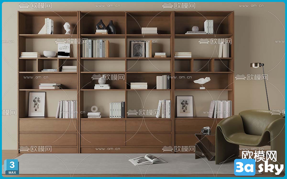 V_北欧书柜 书架3d模型 ID-14231430.rar