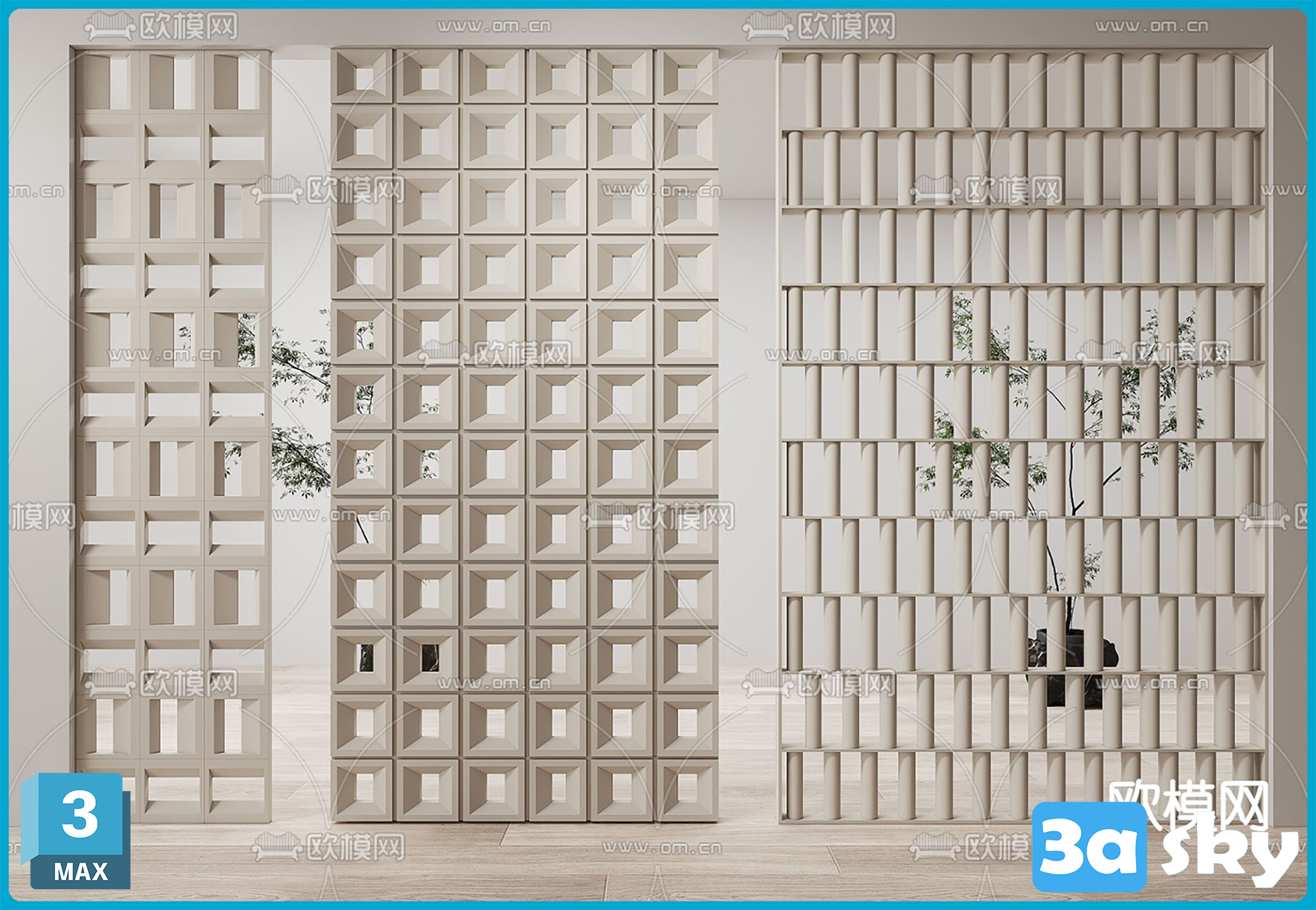 V_VR50隔断屏风水泥砖空心砖3d模型ID-15002135.rar
