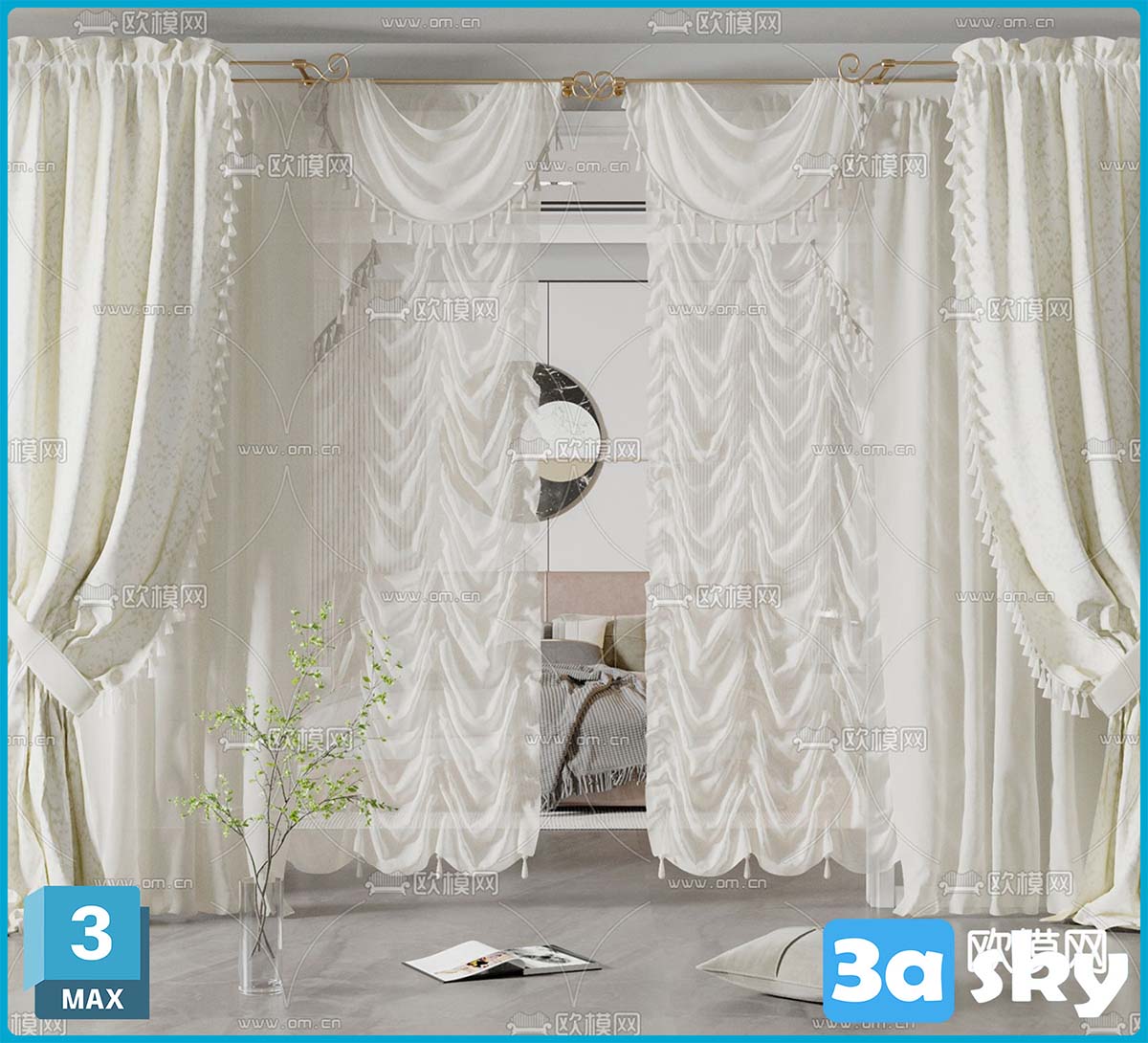 V_欧式布艺窗帘纱窗3d模型 ID-11756344.zip