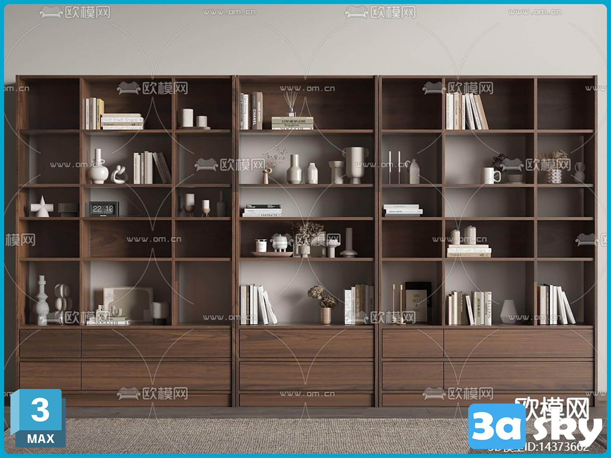 V_侘寂书柜书架3d模型ID-14373662.rar