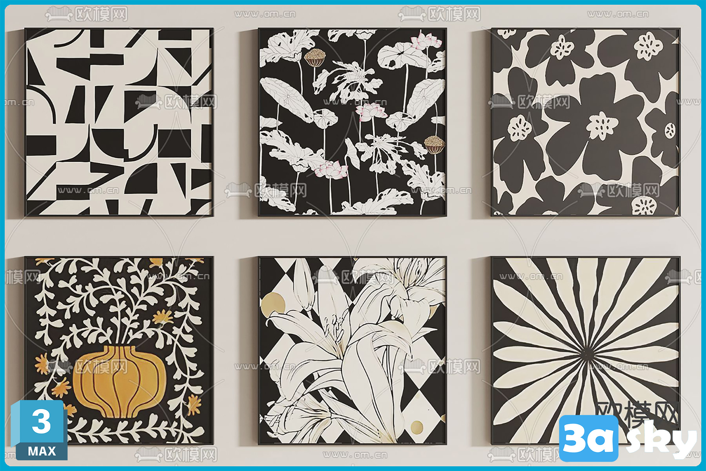 V_VR41装饰画组合画抽象画3d模型ID-14277295.rar