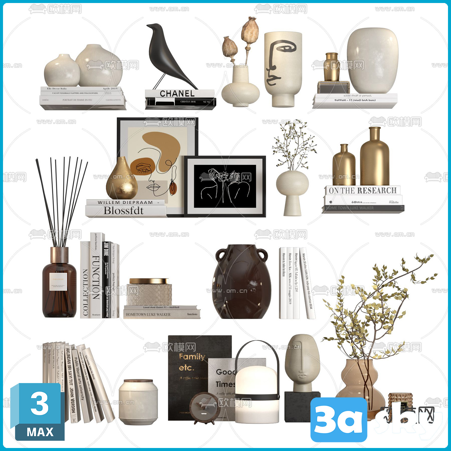 V_现代书籍花瓶饰品摆件3d模型 ID-11843866.zip