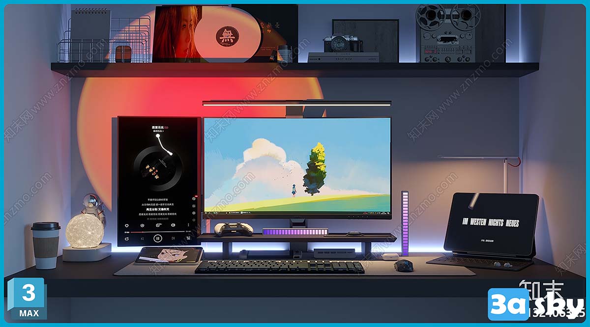 F_CR电脑_月球灯_音响_屏幕挂灯_摆件_氛围灯_落日灯_唱片_平板3D模型ID_1132406325.rar