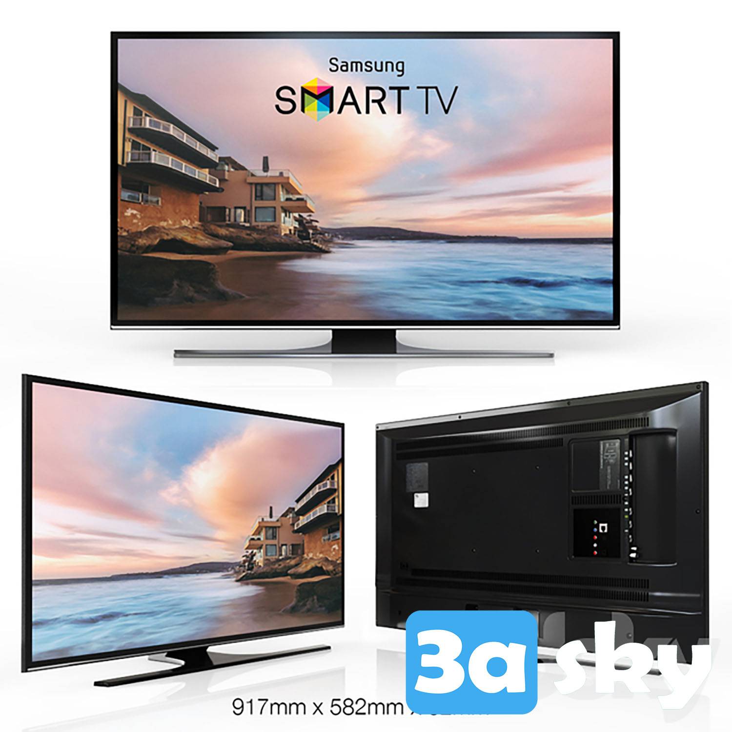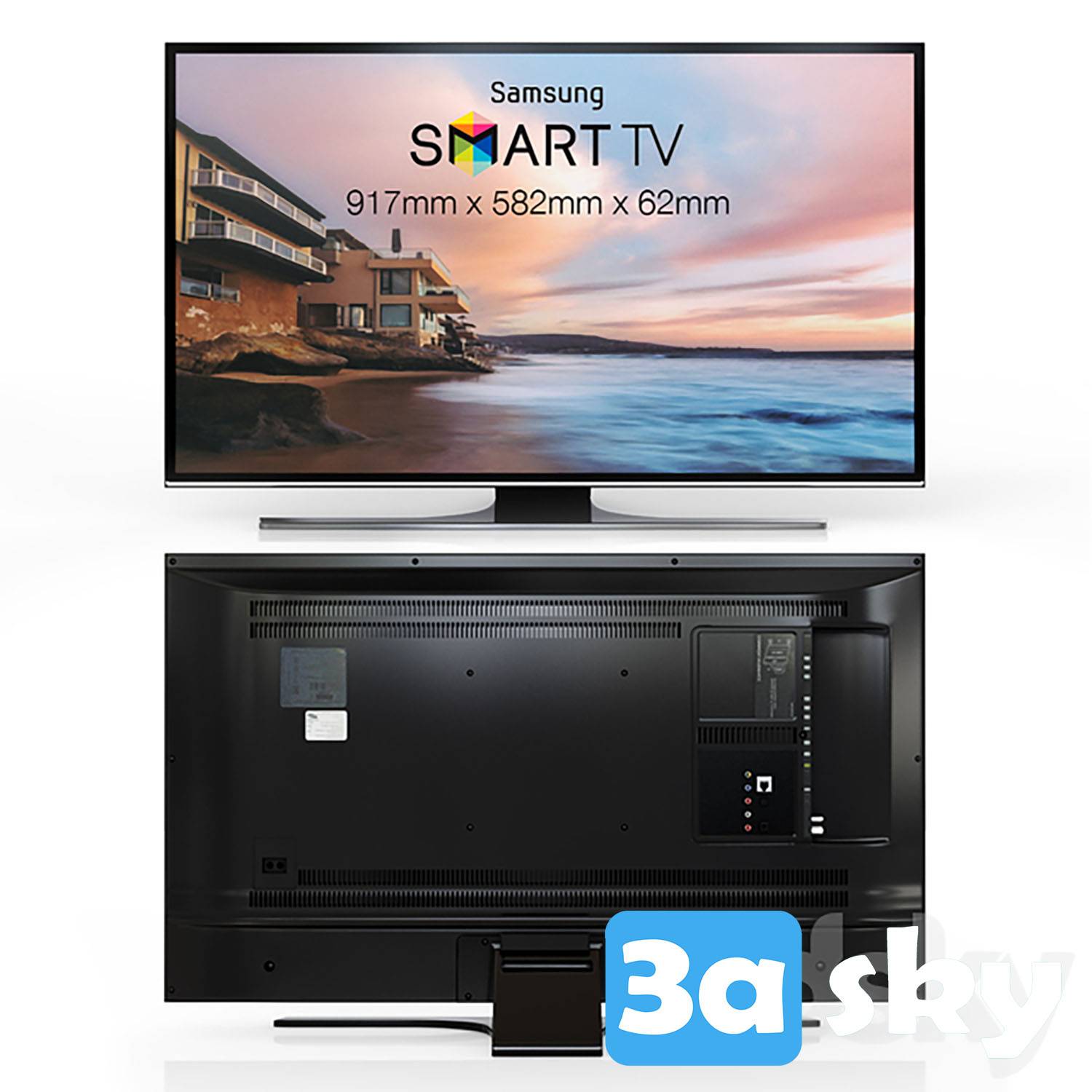 This 3D decoration model features a detailed representation of a Samsung TV, suitable for interior design and home decor projects. The model is created in 3DS MAX format and is ideal for adding a modern touch to your design visuals.