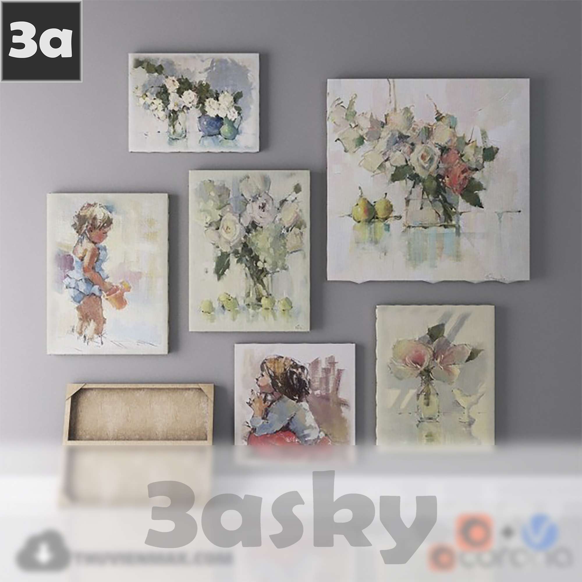 This 3D model features a collection of decorative paintings suitable for interior design projects. Created in 3DS MAX, these high-quality paintings can add a touch of elegance to any virtual space. Perfect for architectural visualization and design presentations.