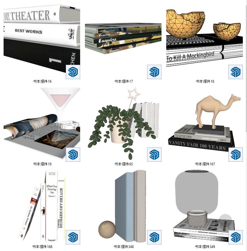This 3D decoration Sketchup model features a modern book decoration, perfect for contemporary interior design projects. Enhance your design with this high-quality 3D model.