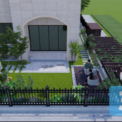This 3D exterior scene model showcases a modern architectural design created in Sketchup. The scene features clean lines, large windows, and a minimalist aesthetic, perfect for architectural visualization projects. Explore this stunning design for inspiration and ideas for your next project.