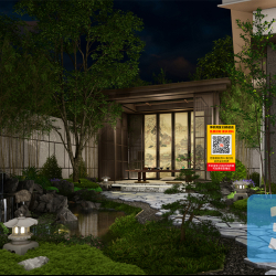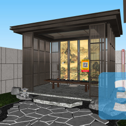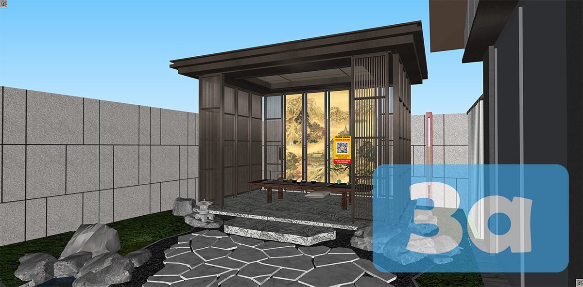 This 3D exterior scene model in Sketchup features a modern architectural design with intricate details. The landscaping adds a touch of elegance to the overall look. Perfect for architectural visualization and design inspiration.