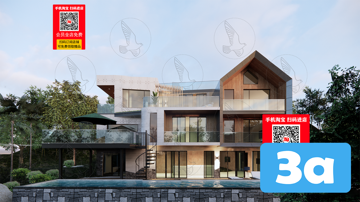 This 3D scene showcases a modern house exterior design created in Sketchup. The scene features contemporary architecture with clean lines and stylish elements. Explore the intricate details of the building, landscaping, and outdoor spaces. Perfect for architectural visualization and design inspiration.