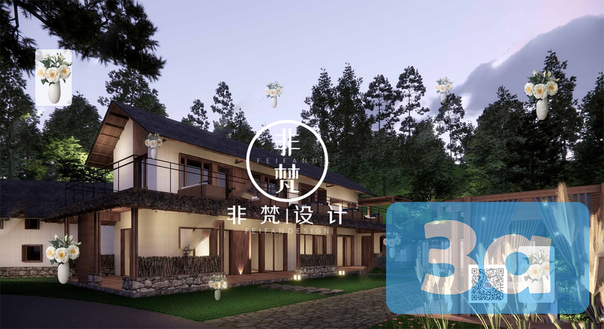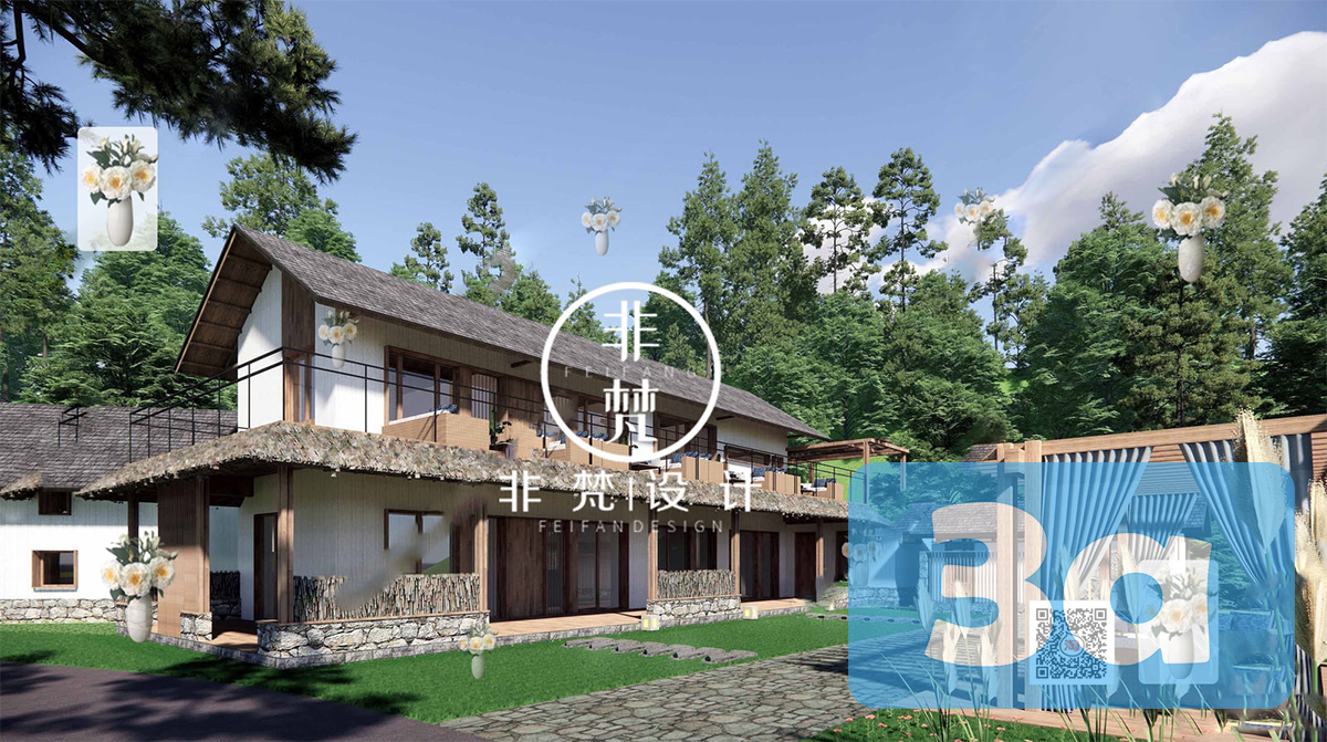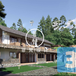 This Sketchup 3D scene showcases an exterior architectural design with intricate details. The model includes elements such as building structures, windows, doors, and landscaping features. Explore the creativity and precision in this 3D rendering, perfect for architectural visualization projects.