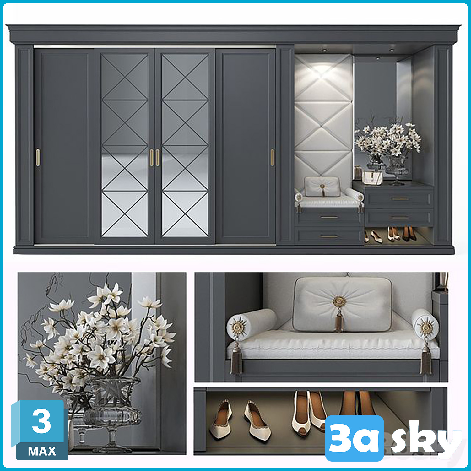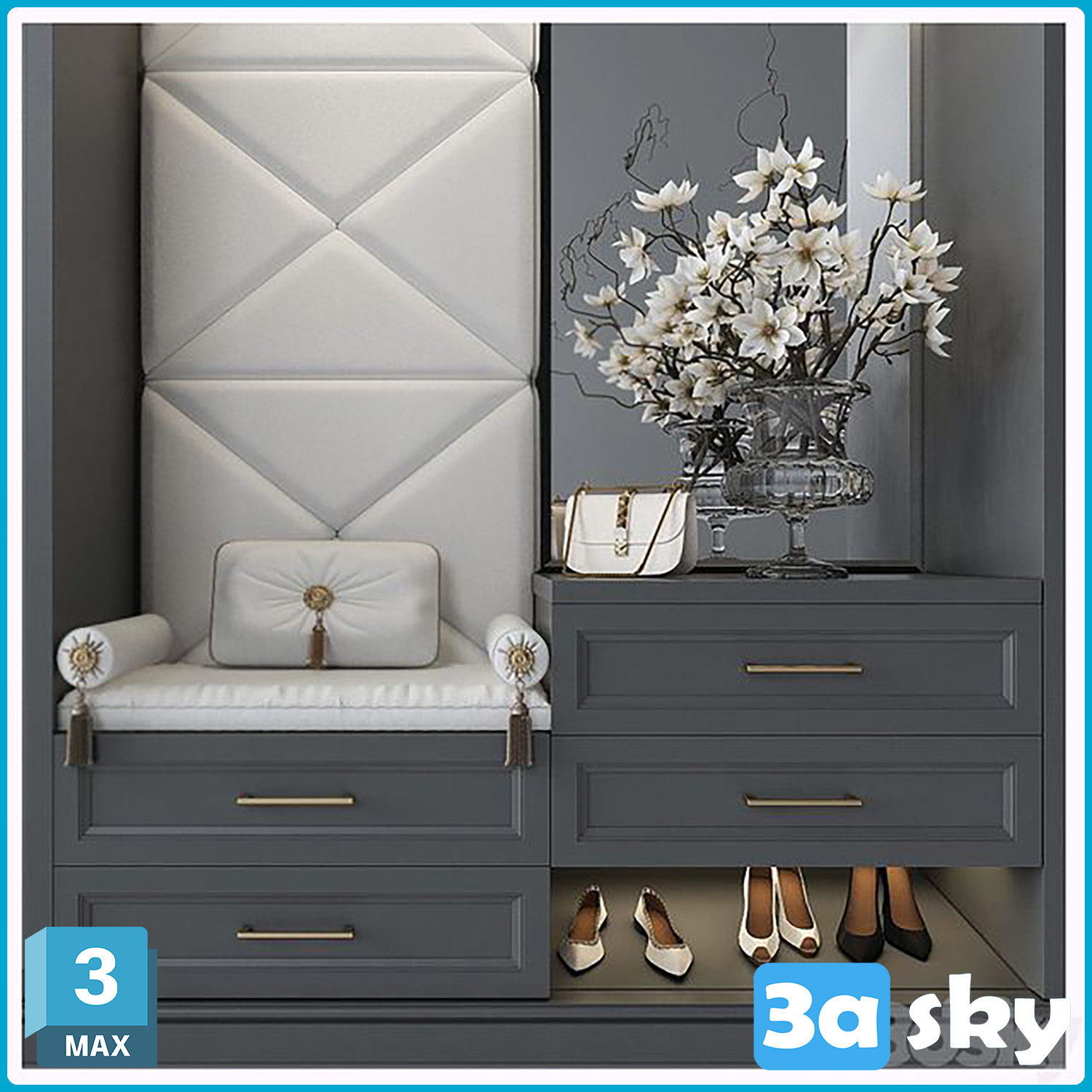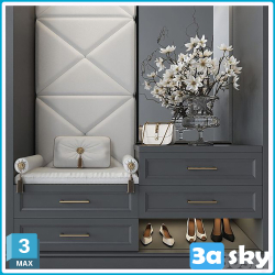 This 3D file showcases a beautifully designed furniture composition in a living room setting. It includes a modern sofa, a stylish coffee table, a comfortable armchair, a chic lamp, and a cozy rug. The arrangement and design of the furniture create a harmonious and inviting atmosphere in the room.