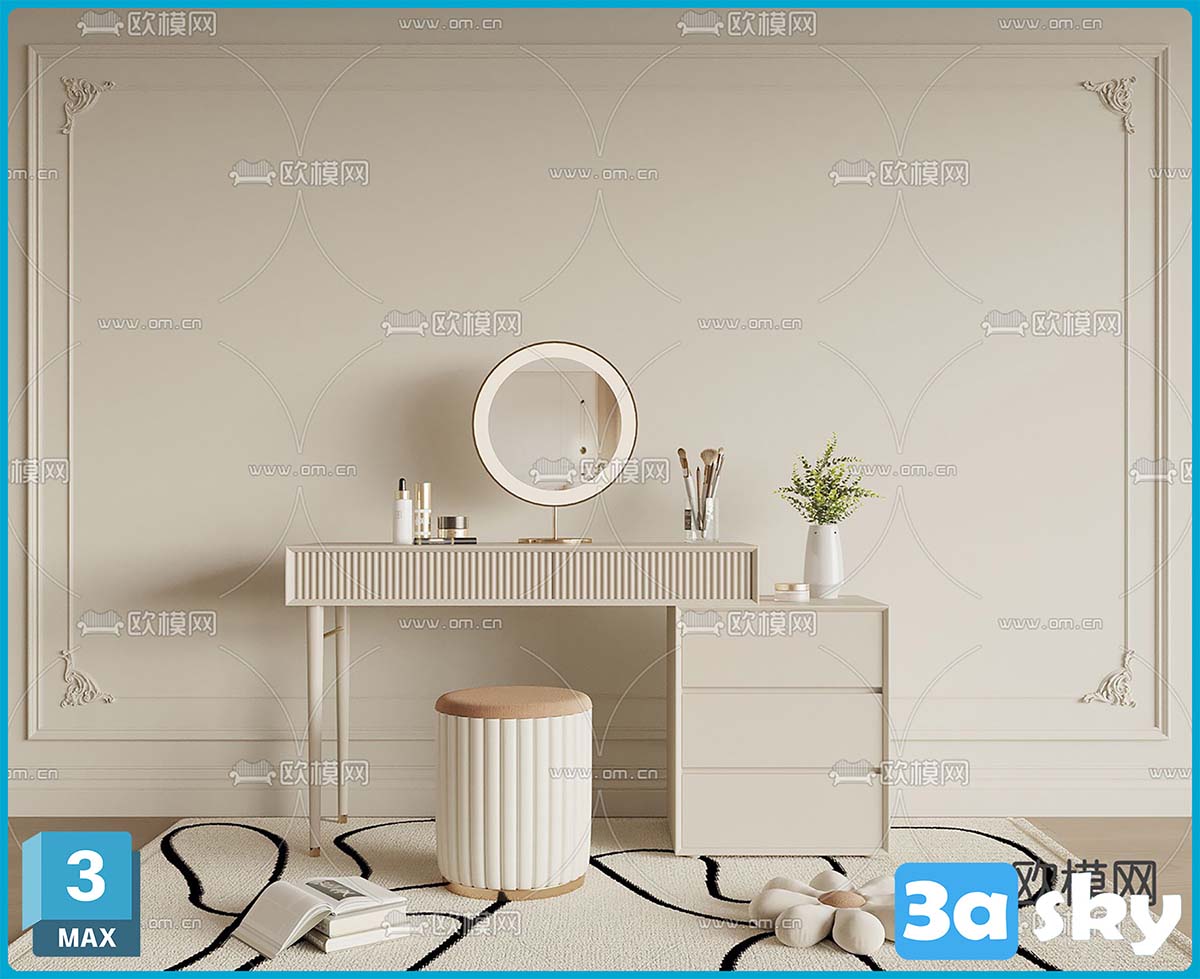 V_VR50奶油风梳妆台化妆桌3d模型ID-15005406.rar
