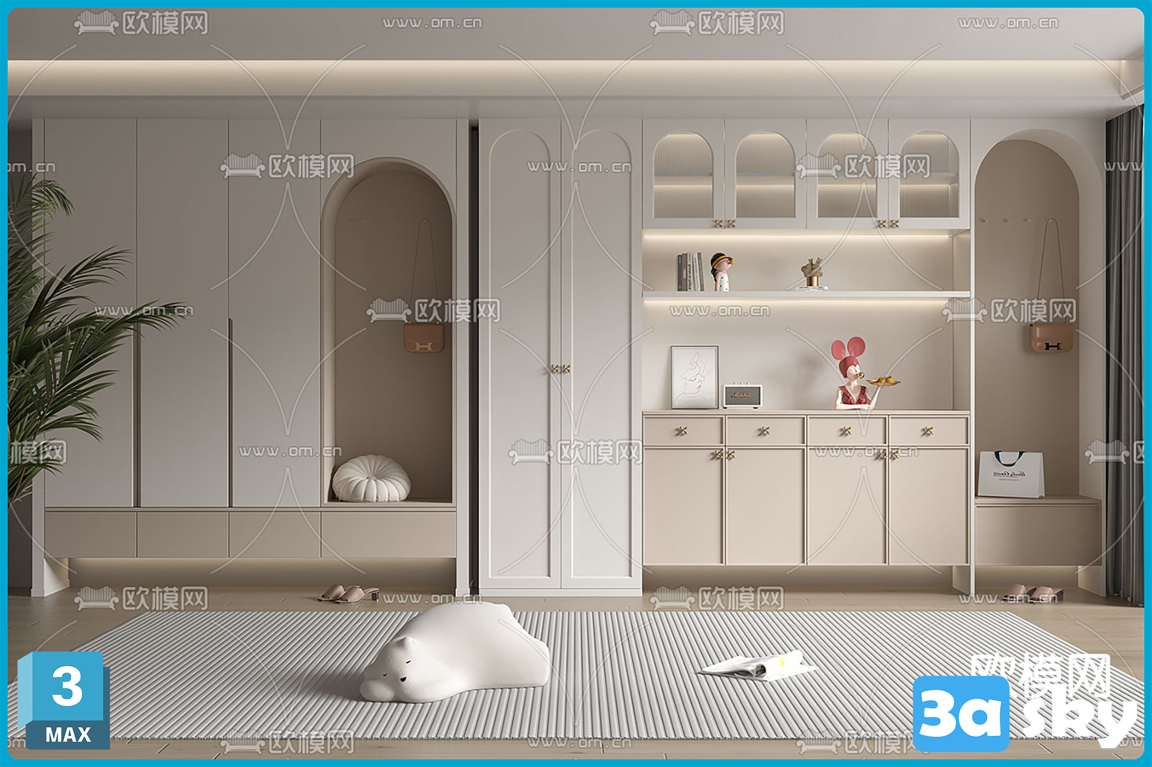 V_奶油风鞋柜3d模型ID-14336695.rar