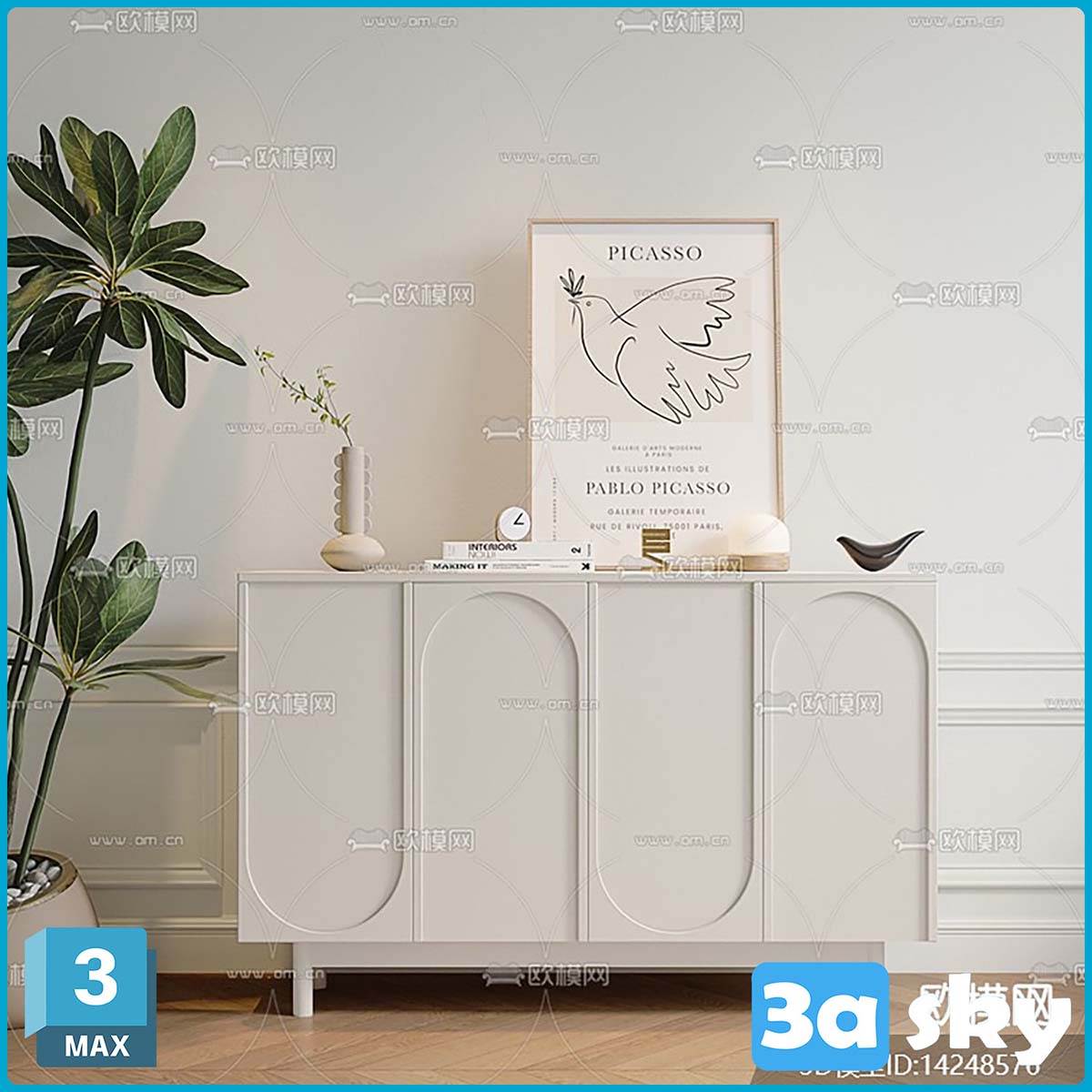 V_14248576奶油风边柜玄关柜端景柜模型.rar