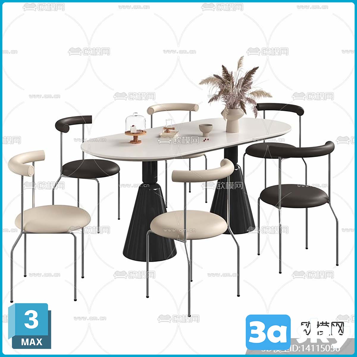 F_奶油风餐桌椅3d模型ID-14115056.rar