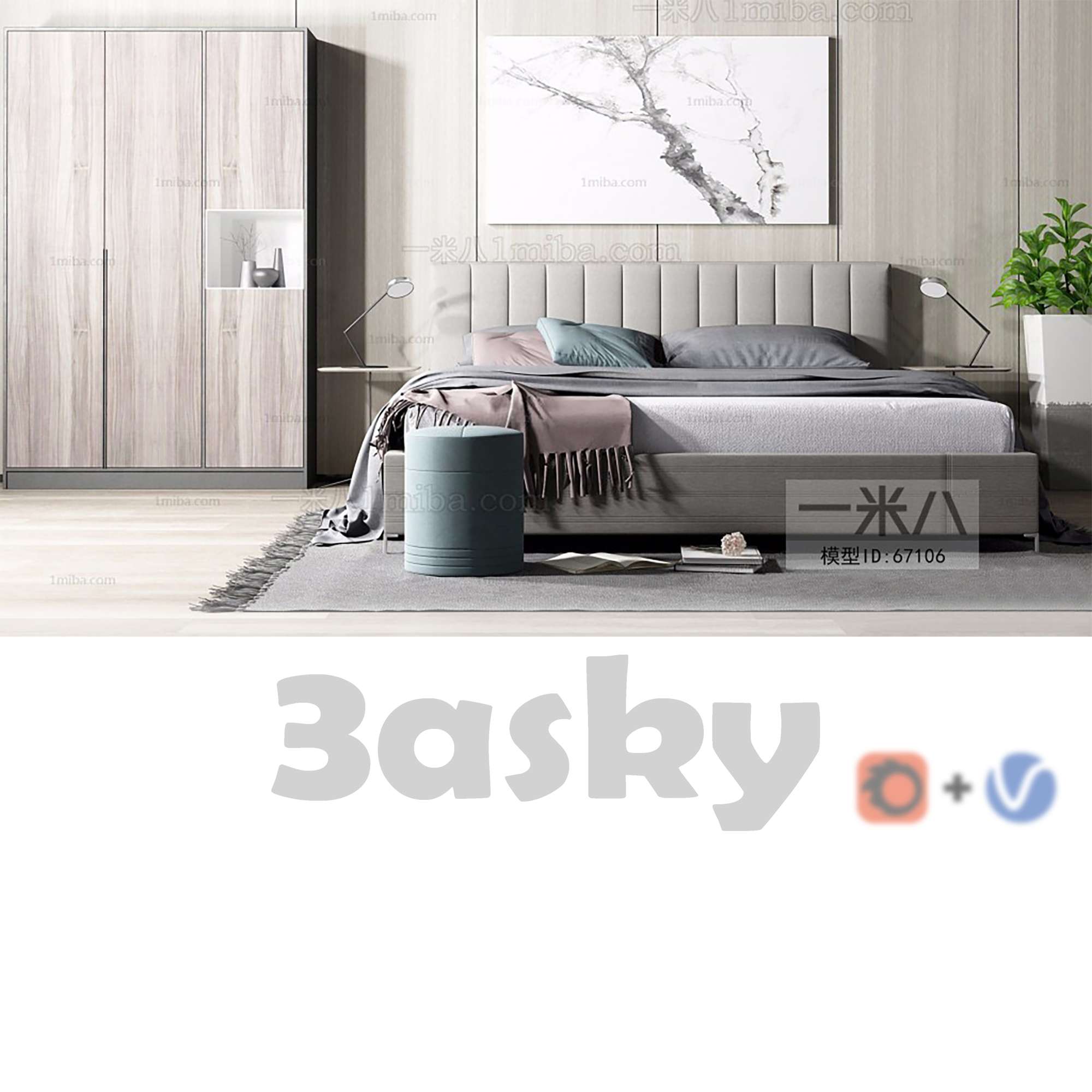 This 3D furniture model showcases Bed 105, a stylish and modern piece perfect for interior design projects. The preview image provides a detailed look at the design and structure of the bed, making it a great addition to your collection of furniture models.