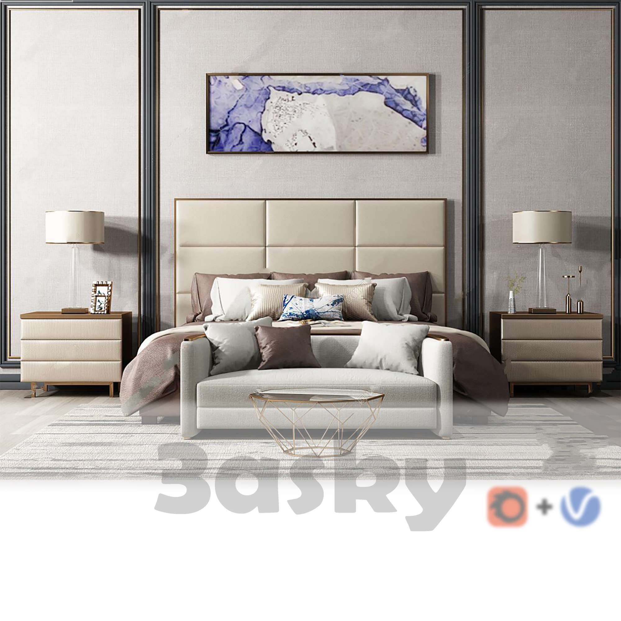 This 3D model showcases Bed 351, a modern and stylish piece of furniture suitable for bedroom decor. The design features sleek lines and a contemporary aesthetic, perfect for enhancing the overall look of any bedroom. Explore the intricate details and craftsmanship of this furniture piece in the preview image.