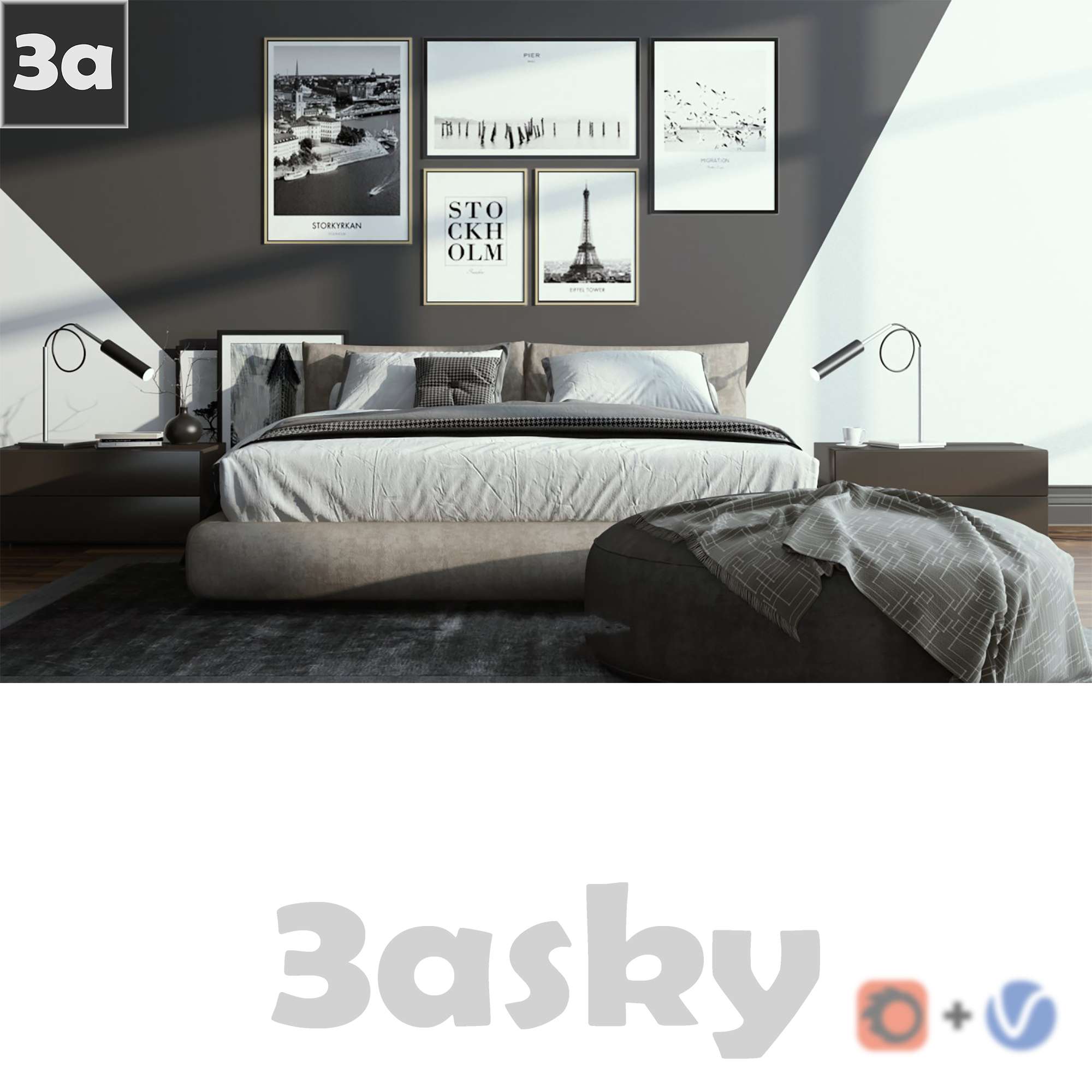 This 3D model showcases a modern bed design labeled as Bed 94. The image provides a preview of the detailed furniture model created in 3DS MAX. The design features contemporary elements suitable for bedroom decor. Explore this 3D furniture model for interior design projects and visualizations.