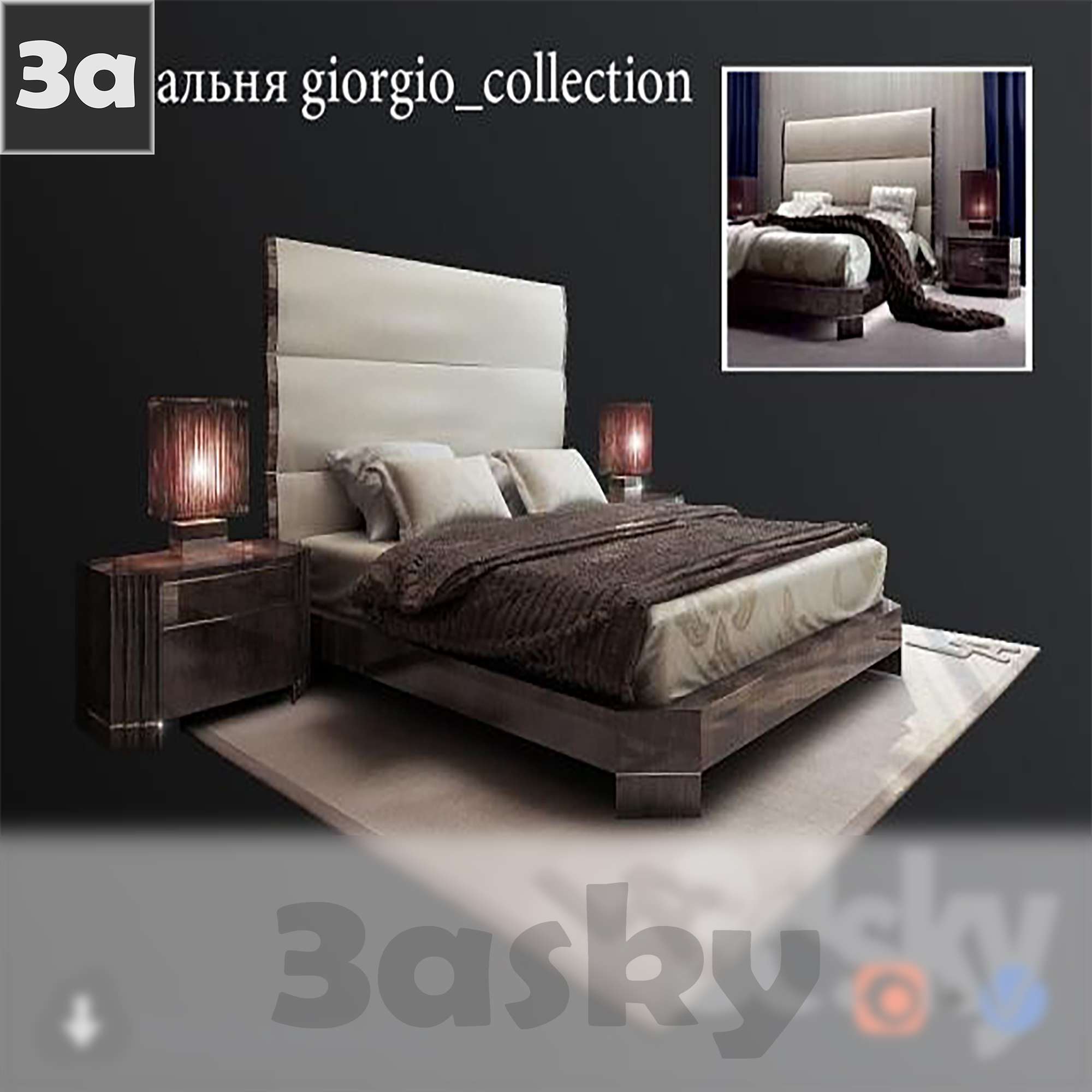 This 3D furniture model features a detailed preview of a bed texture. The design showcases intricate details and textures, providing a realistic representation of the furniture piece. Explore the high-quality rendering and texture work in this 3D model.