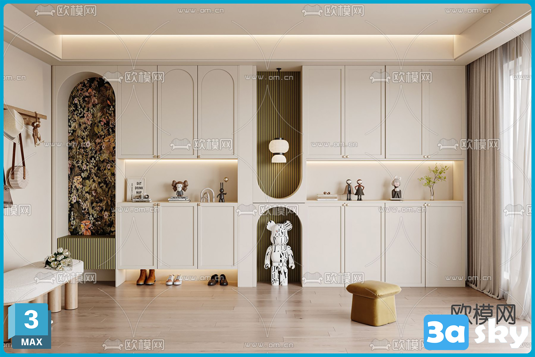 V_VR50奶油风鞋柜3d模型ID-14318739.rar