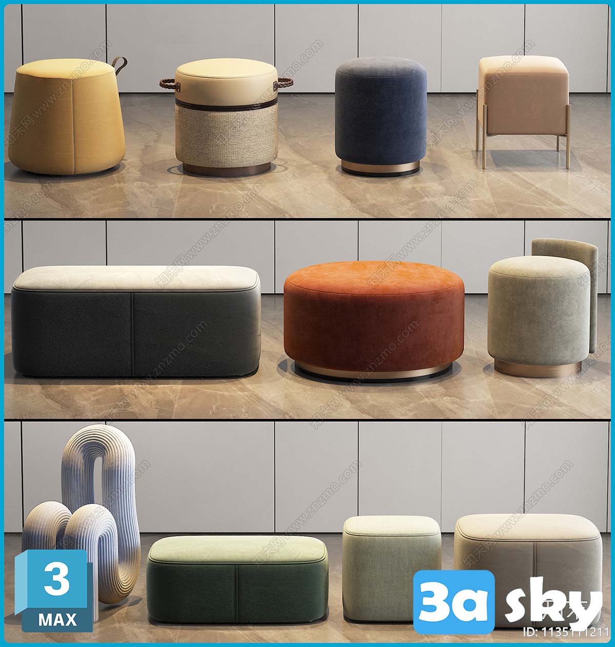 V_VR现代沙发凳矮凳组合3D模型ID_1135111211.zip