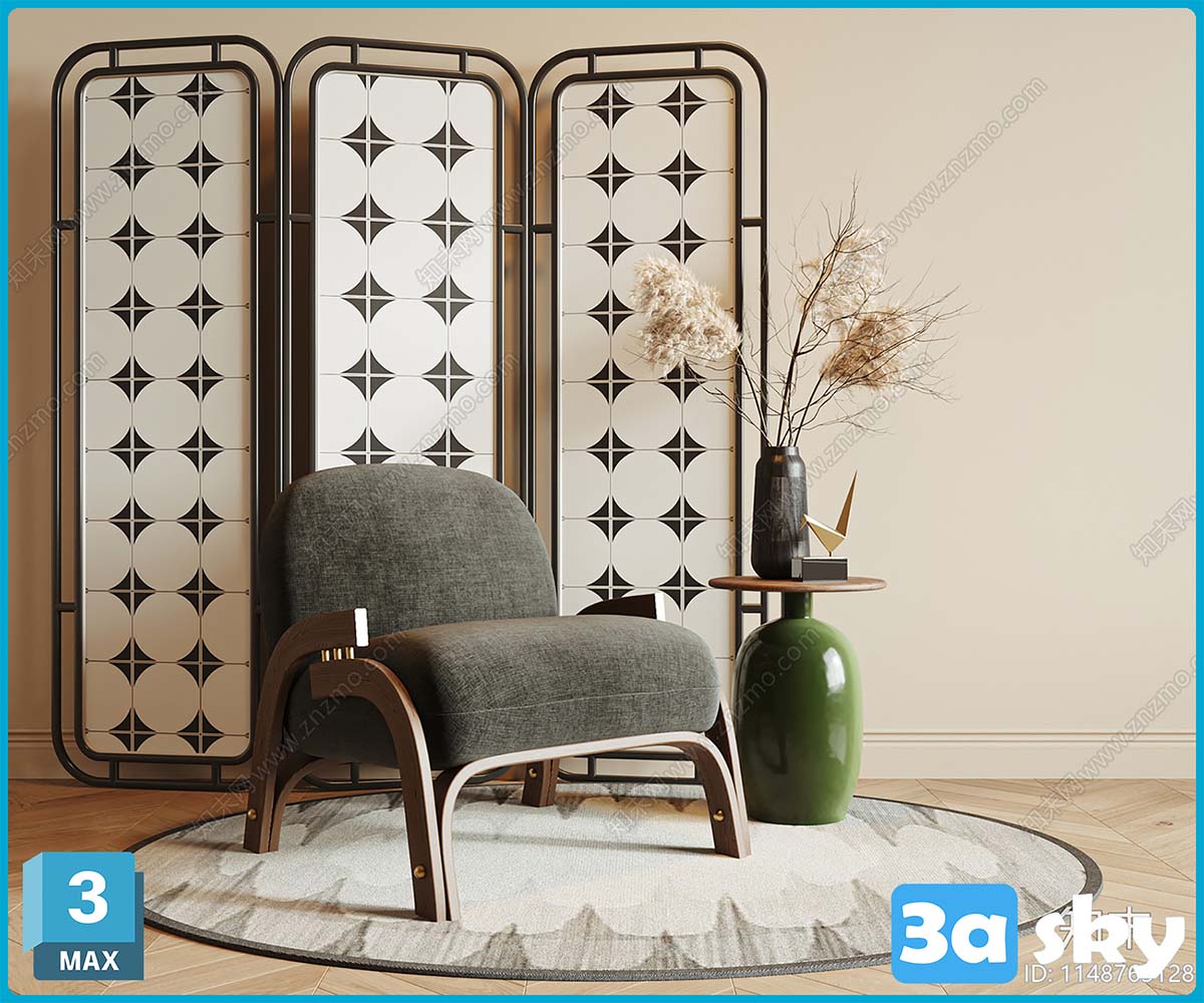 V_VR法式中古风休闲椅_边几_花艺_饰品_摆件3D模型ID_1148763128.zip