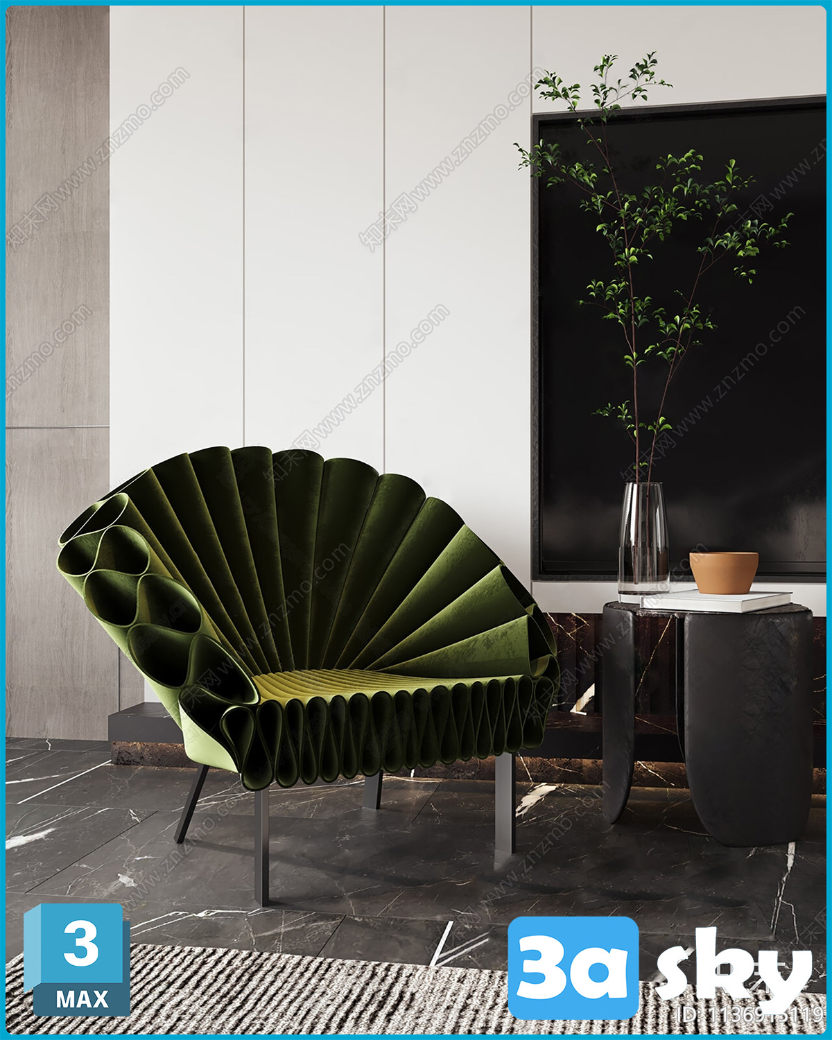 This 3D furniture model was created using 3DS MAX software, showcasing intricate details and high-quality rendering. Ideal for interior designers and architects looking for realistic furniture models for their projects.