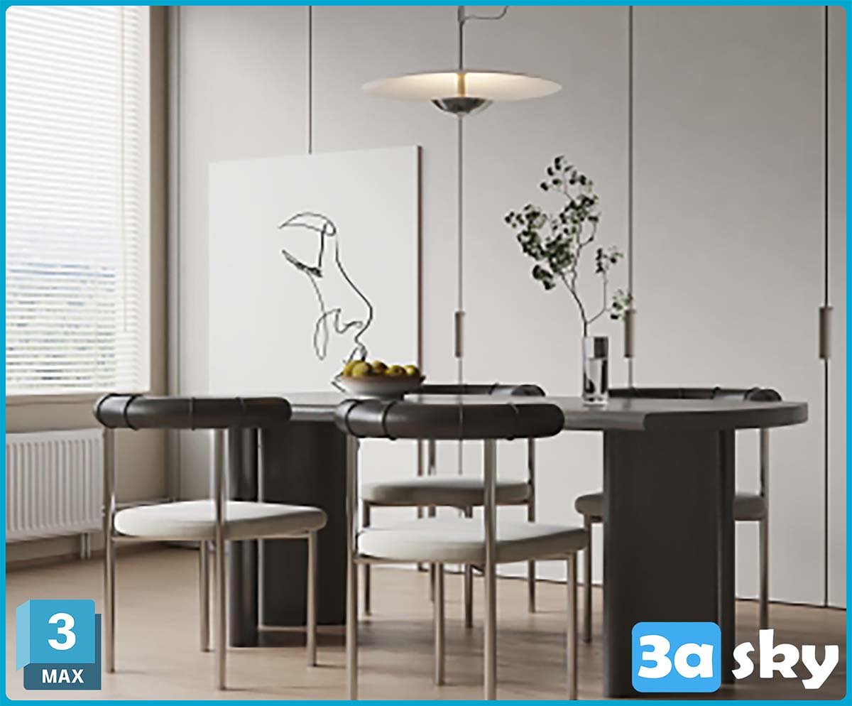This 3D furniture model was created using 3DS MAX software. It is a high-quality image suitable for interior design projects. The model showcases detailed furniture design and can be used in various design applications.