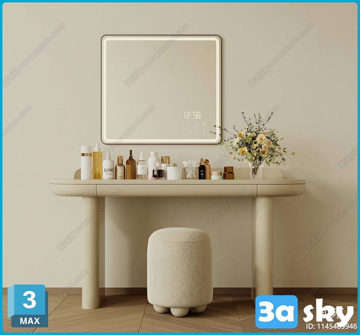 This image showcases a detailed 3D furniture model created using 3DS MAX software. The design features intricate details and realistic textures, making it suitable for interior design and home furnishing projects. Explore the high-quality preview to appreciate the craftsmanship and creativity behind this furniture model.