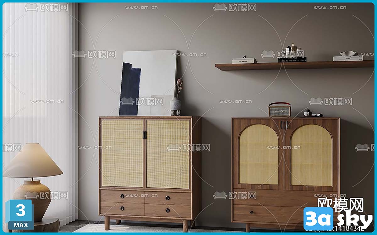 V_14184342寂风边柜藤编柜模型.rar