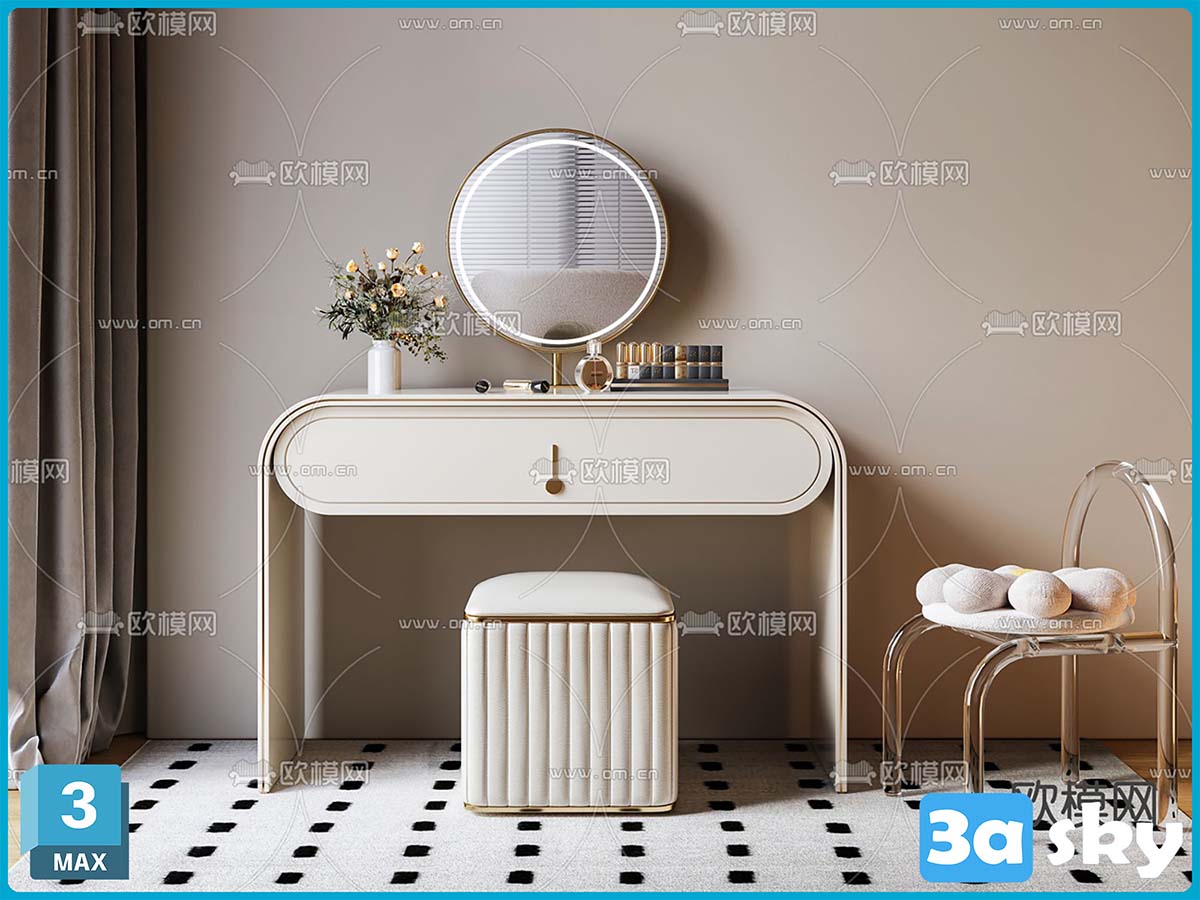 V_奶油风梳妆台化妆台3d模型ID-12278898.rar