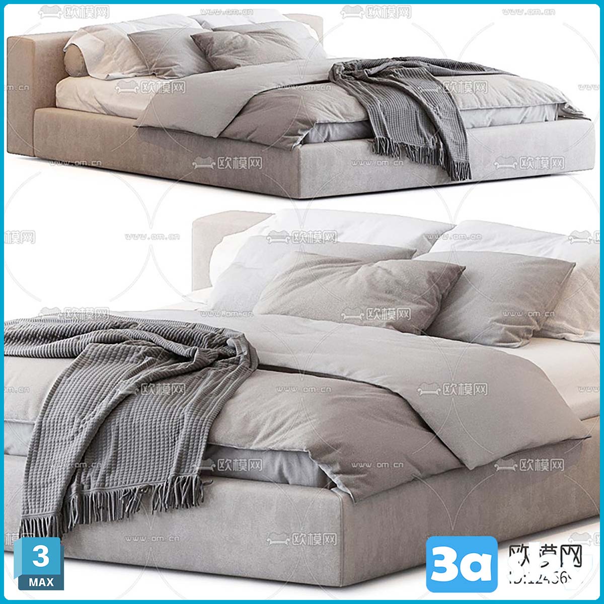 V_现代布艺双人床3d模型 ID-1245693.rar