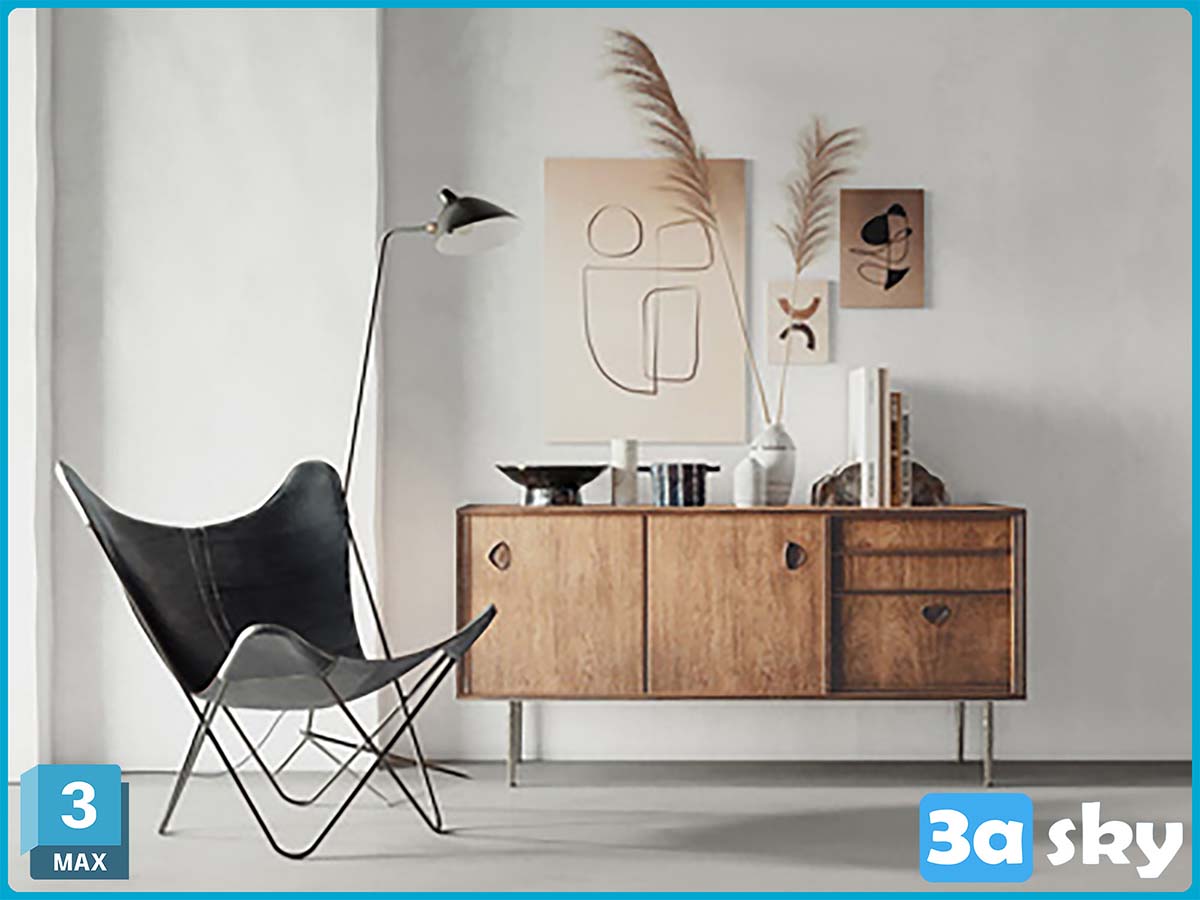 This is a preview image of a furniture model created in 3DS MAX. The image showcases the design and details of the 3D model, highlighting the craftsmanship and quality of the furniture piece. Explore this high-quality preview to get a closer look at the intricate details and design elements of the furniture model.
