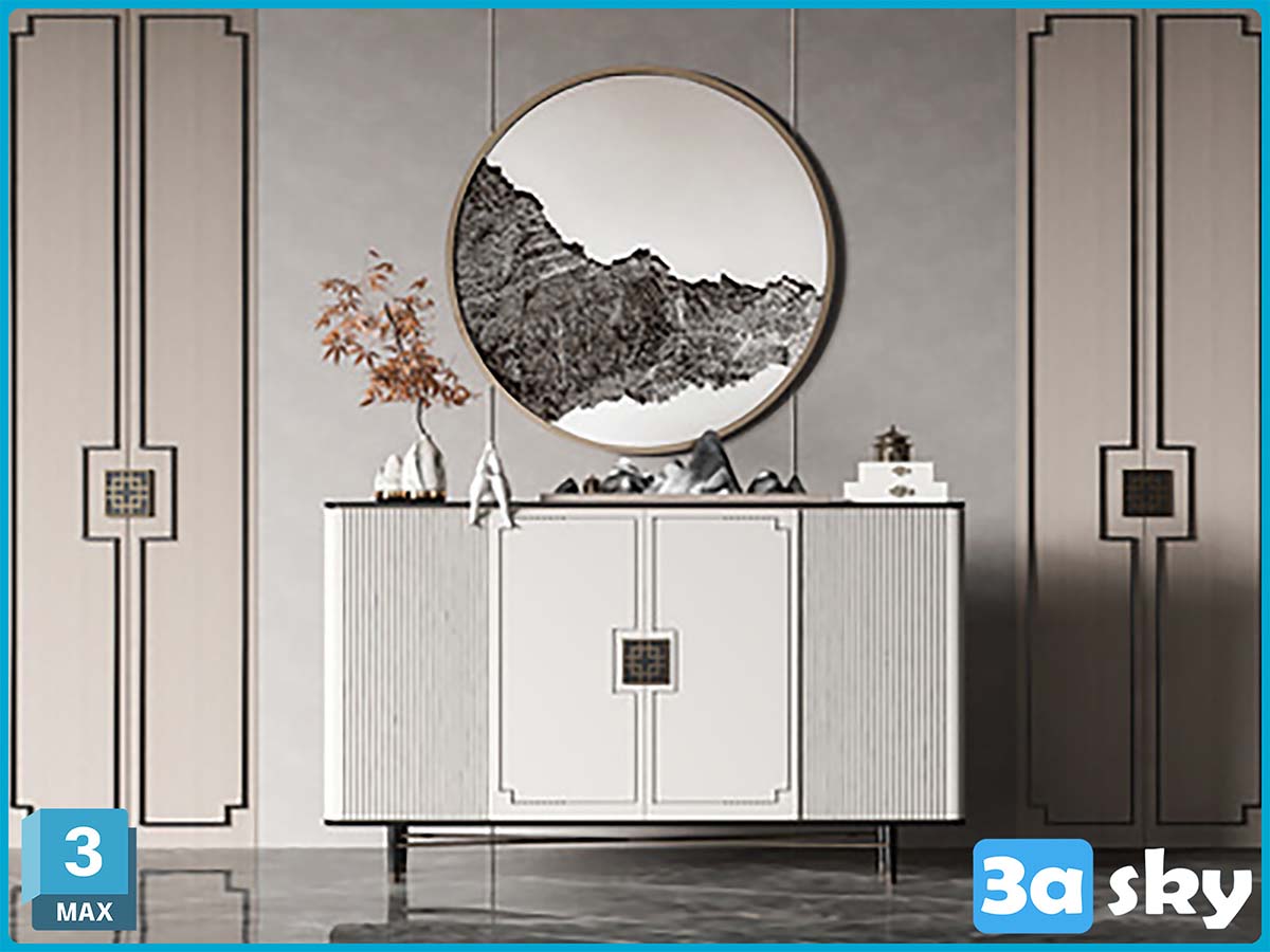 This image showcases a detailed 3D furniture model created using 3DS MAX software. The model is designed with precision and is suitable for interior design projects. The high-quality rendering highlights the intricate details of the furniture piece, making it a valuable asset for designers and architects.