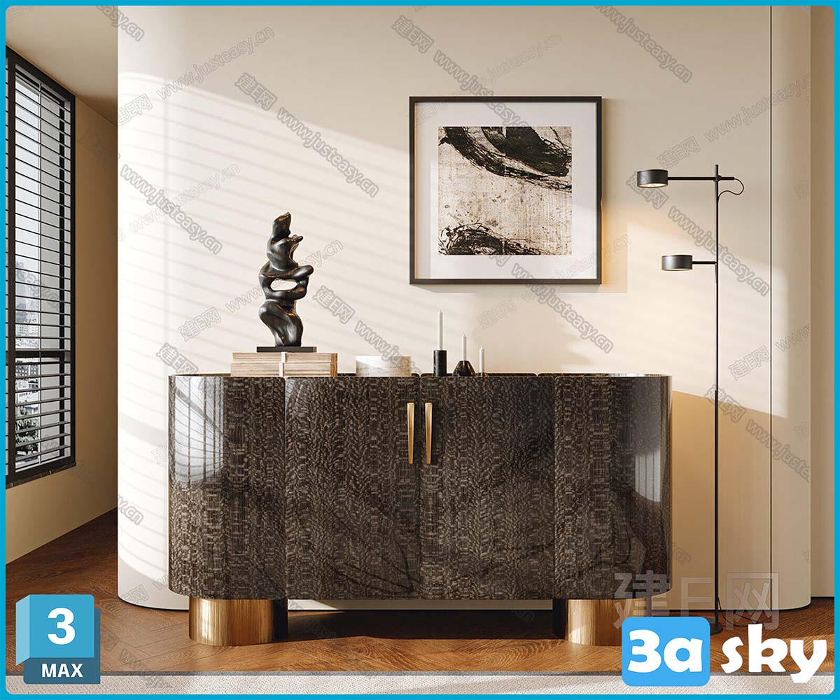 This 3D furniture model showcases a modern design created using 3DS MAX software. The image provides a detailed preview of the furniture piece, highlighting its intricate details and structure. Perfect for interior designers, architects, and 3D modeling enthusiasts looking for high-quality furniture models for their projects.