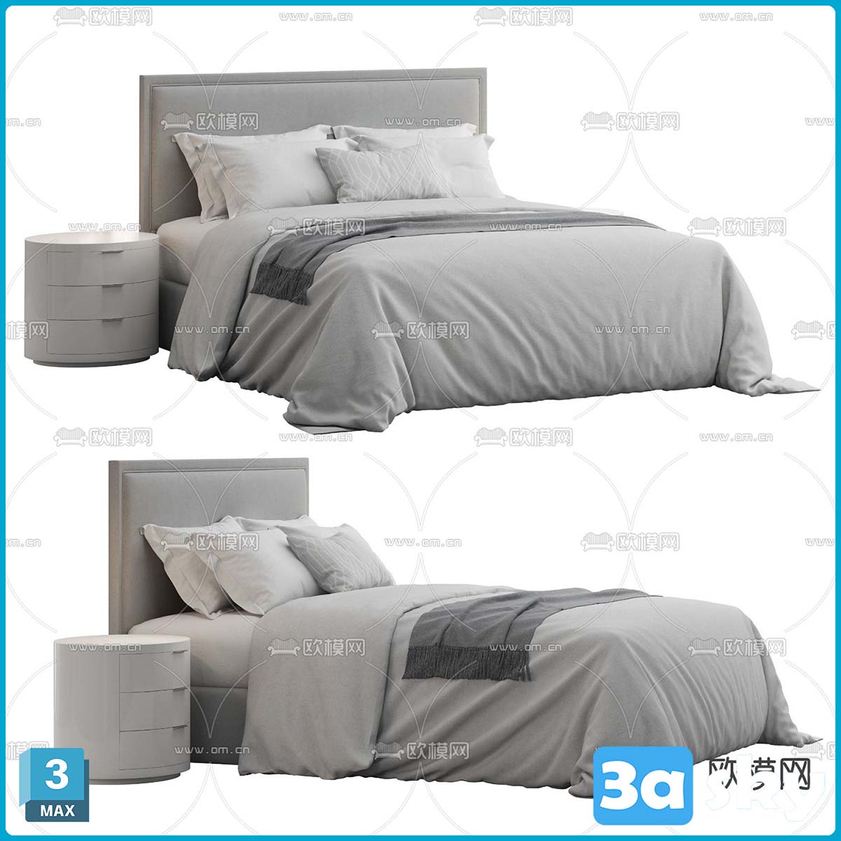 F_现代布艺双人床3d模型 ID-11807807.rar