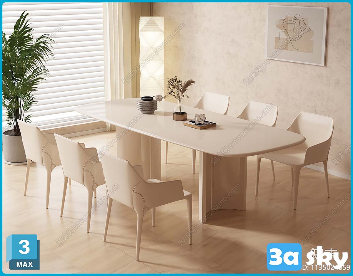F_VR现代奶油风餐桌椅组合_餐厅_花瓶_皮革靠背椅_装饰画_落地灯_百叶窗3D模型ID_1135024859.zip