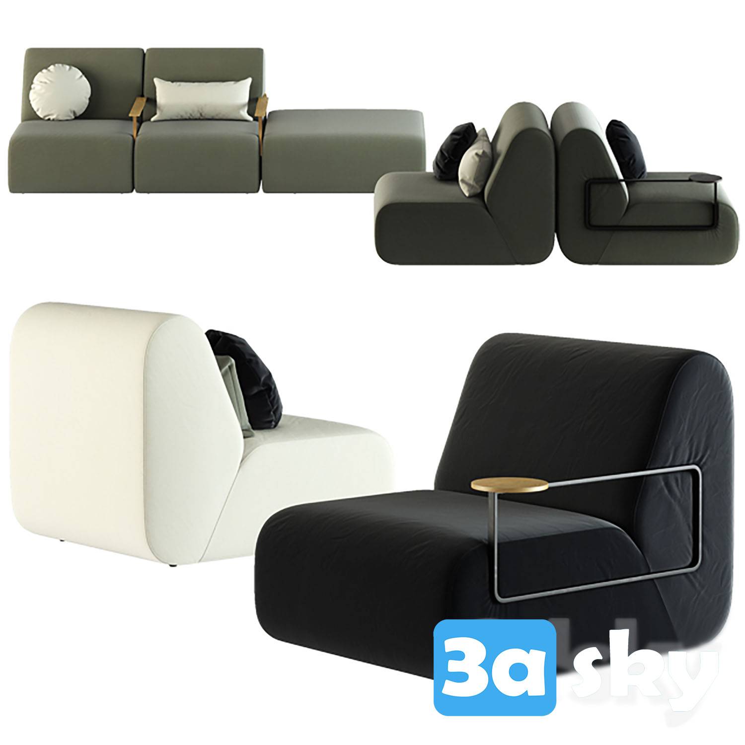 This 3D furniture model was created using 3DS MAX software. It features a modern design with high attention to detail. The render showcases the intricate details and textures of the furniture piece, making it ideal for interior design projects and visualizations.