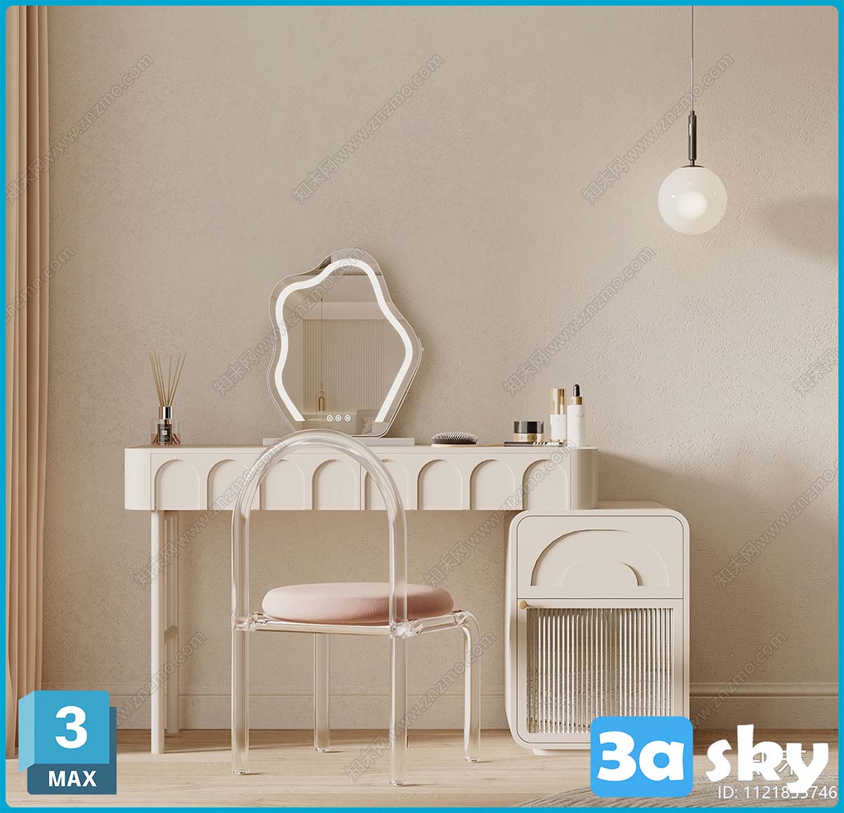 V_法式奶油风梳妆台3d模型ID-12128396.rar