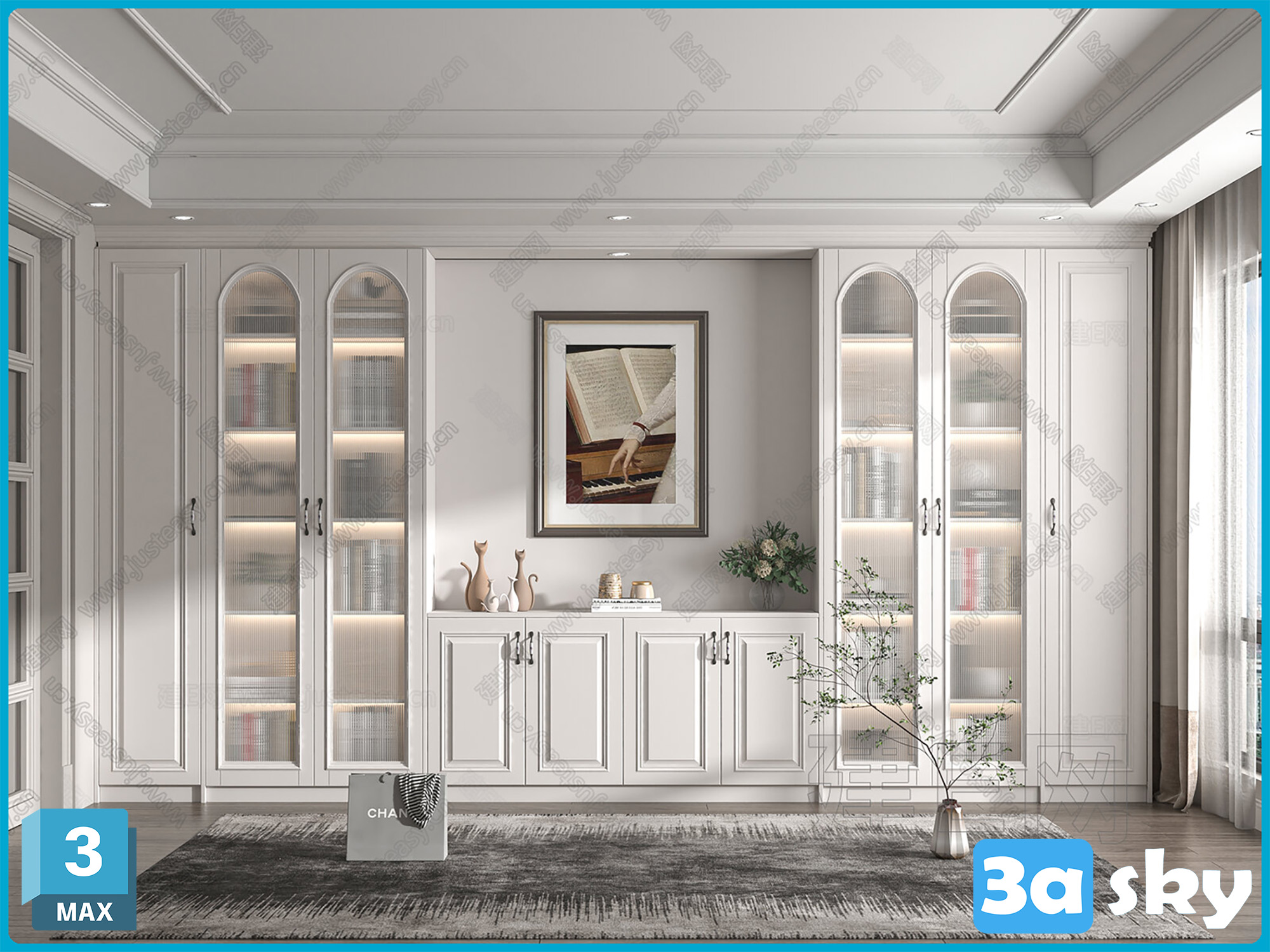 This image showcases a detailed 3D furniture model created using 3DS MAX software. The design features intricate details and high-quality textures, making it suitable for interior design and decor projects. Explore the preview to get a closer look at the structure and design elements of this furniture model.