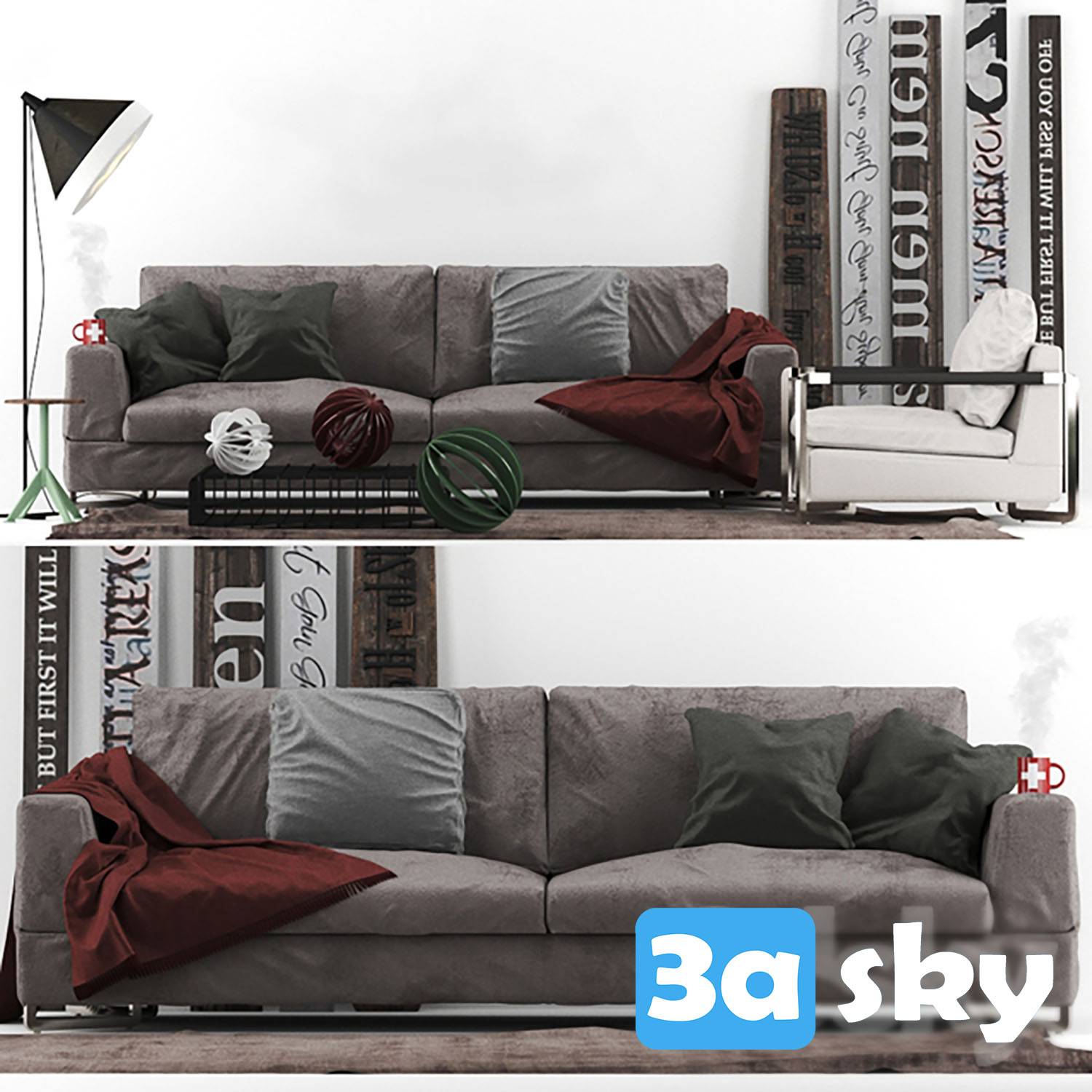 This 3D furniture model showcases a modern armchair designed in 3DS MAX. It is a high-quality representation suitable for interior design projects and visualization. The model features sleek lines and a contemporary design, making it a versatile addition to various design concepts.