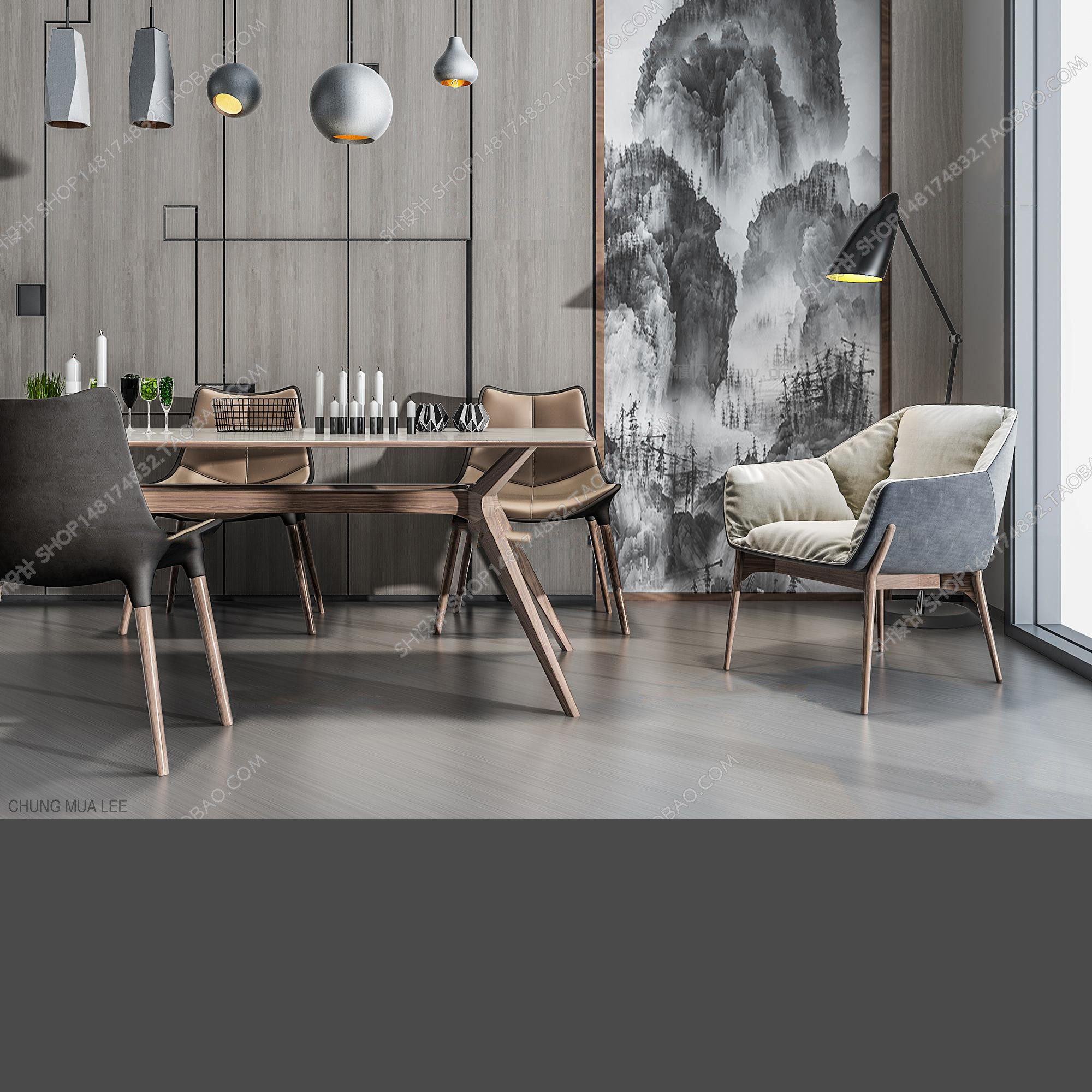 This 3D model showcases a modern furniture set consisting of a table and chair. The design is sleek and contemporary, suitable for various interior design projects. Created using 3DS MAX software, this furniture set is ideal for architectural visualization and interior design presentations.