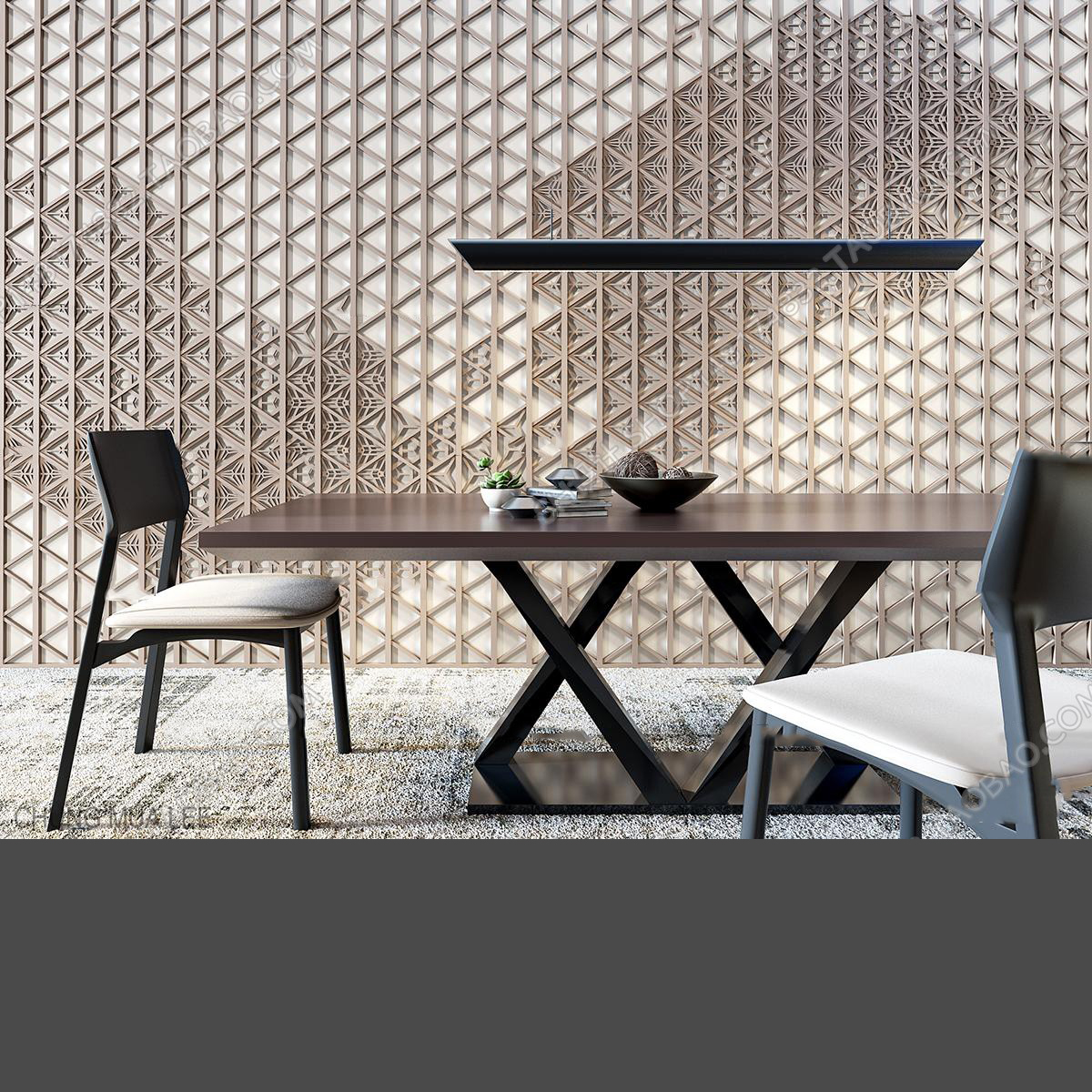 This 3D model showcases a modern furniture set consisting of a table and chair. The design is sleek and contemporary, perfect for interior design projects. Explore the intricate details and craftsmanship of this furniture set in the preview image.