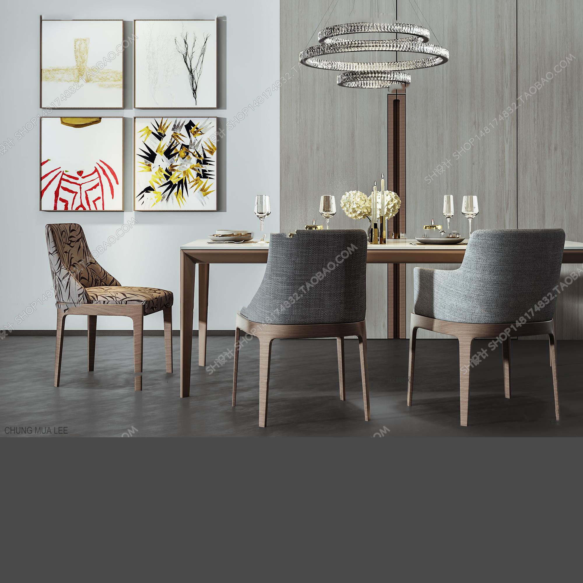 This 3D model showcases a modern furniture set consisting of a table and chair. The design is sleek and contemporary, suitable for various interior design projects. Created using 3DS MAX software, this model offers high-quality details and textures. Ideal for architects, interior designers, and 3D enthusiasts looking to enhance their visualizations.