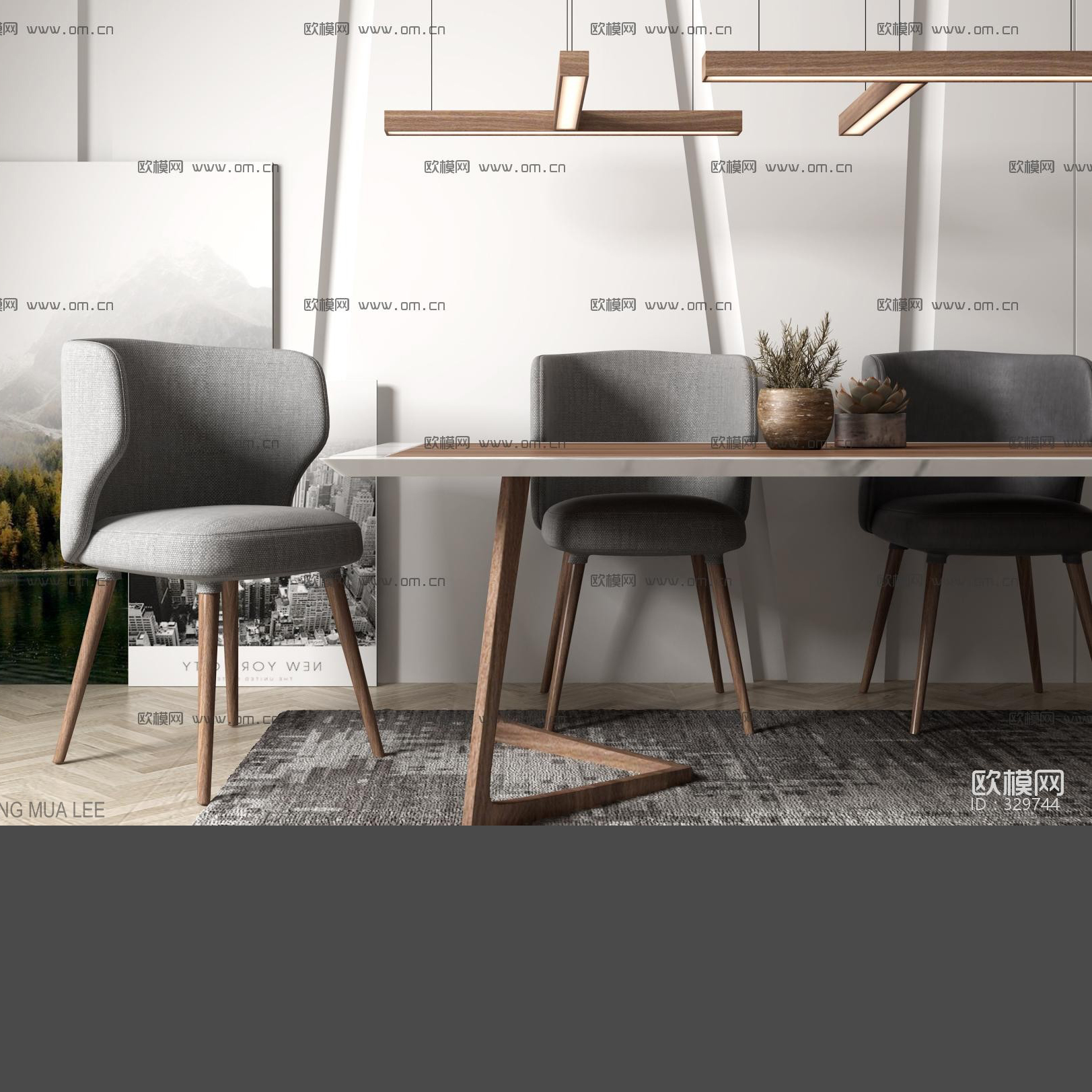 This 3D model showcases a modern furniture set consisting of a table and chair. The design is sleek and contemporary, suitable for various interior design projects. Created using 3DS MAX software, this furniture set is perfect for adding a touch of elegance to your virtual spaces.