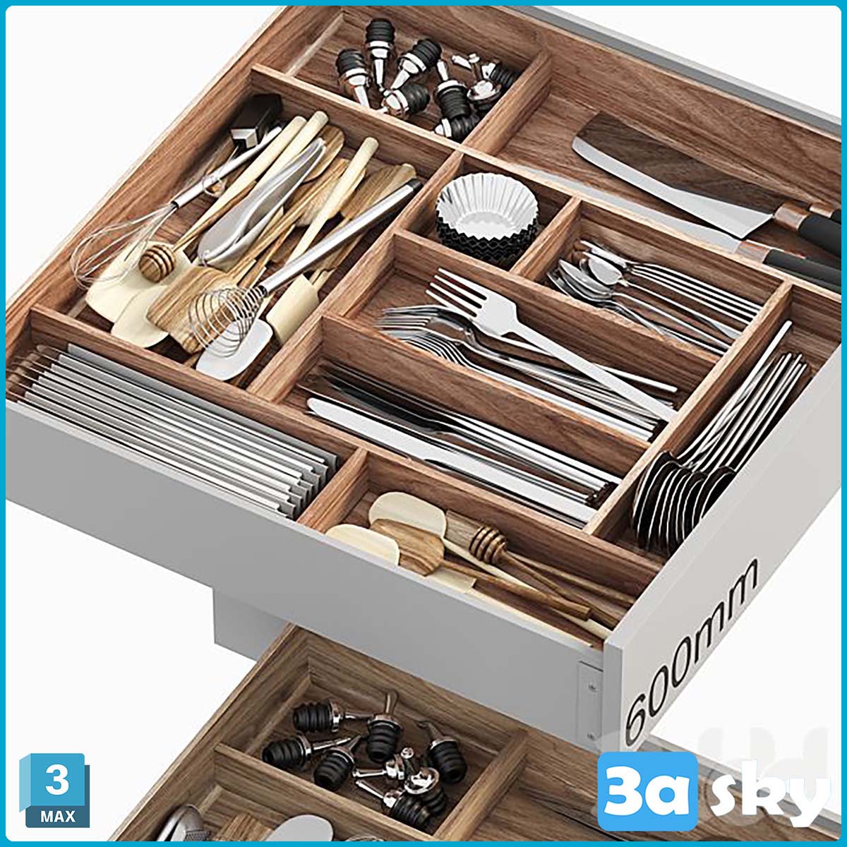 This 3D model showcases a kitchen filling designed for drawers. It is a high-quality and detailed representation suitable for interior design projects and visualization purposes. The model is created in 3DS MAX software.