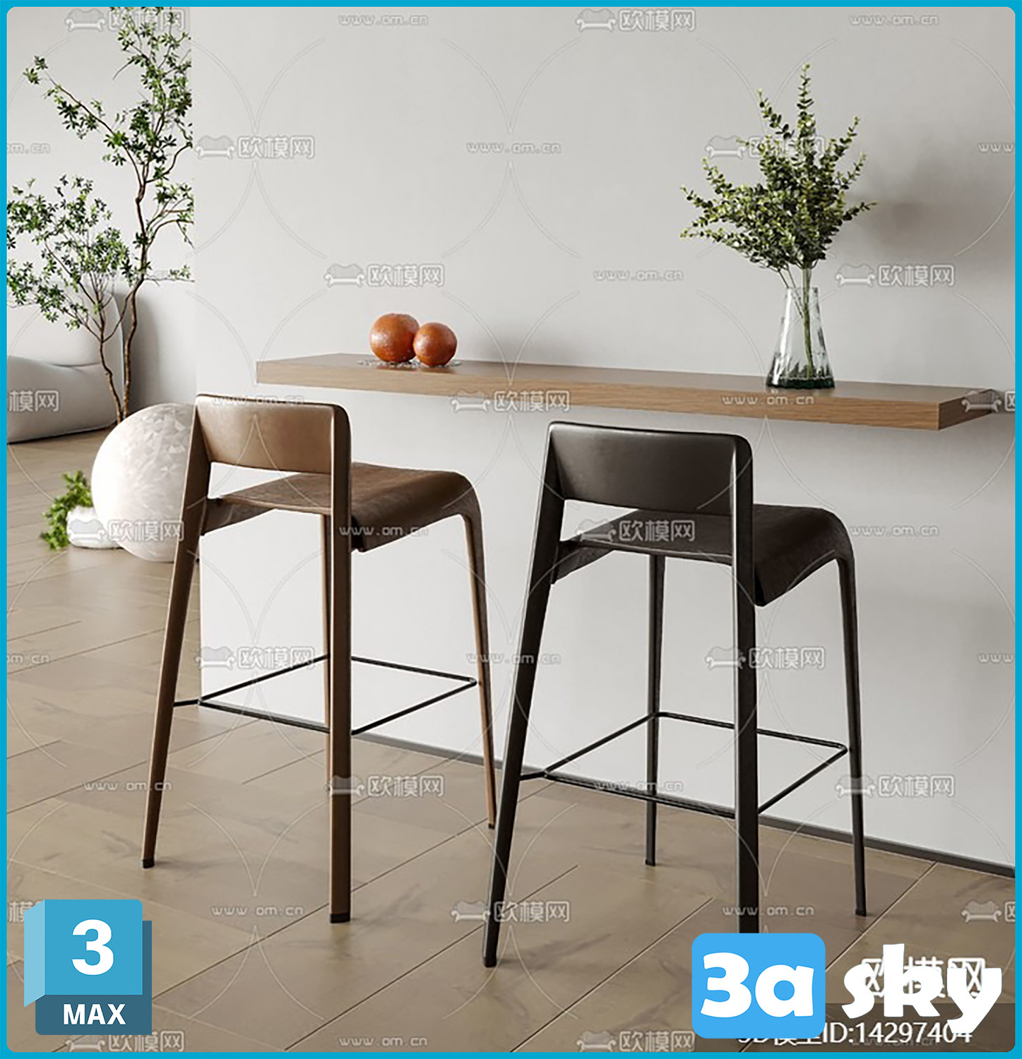 F_皮质吧椅吧凳高脚凳3d模型ID-14297404.rar
