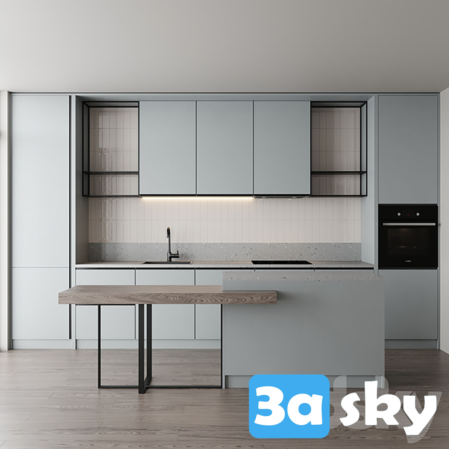 This 3D kitchen model was created using 3DS MAX software. It showcases a modern and stylish kitchen design, perfect for interior design projects. The image provides a detailed view of the kitchen layout, including cabinets, countertops, and appliances. Enhance your design projects with this high-quality 3D model.