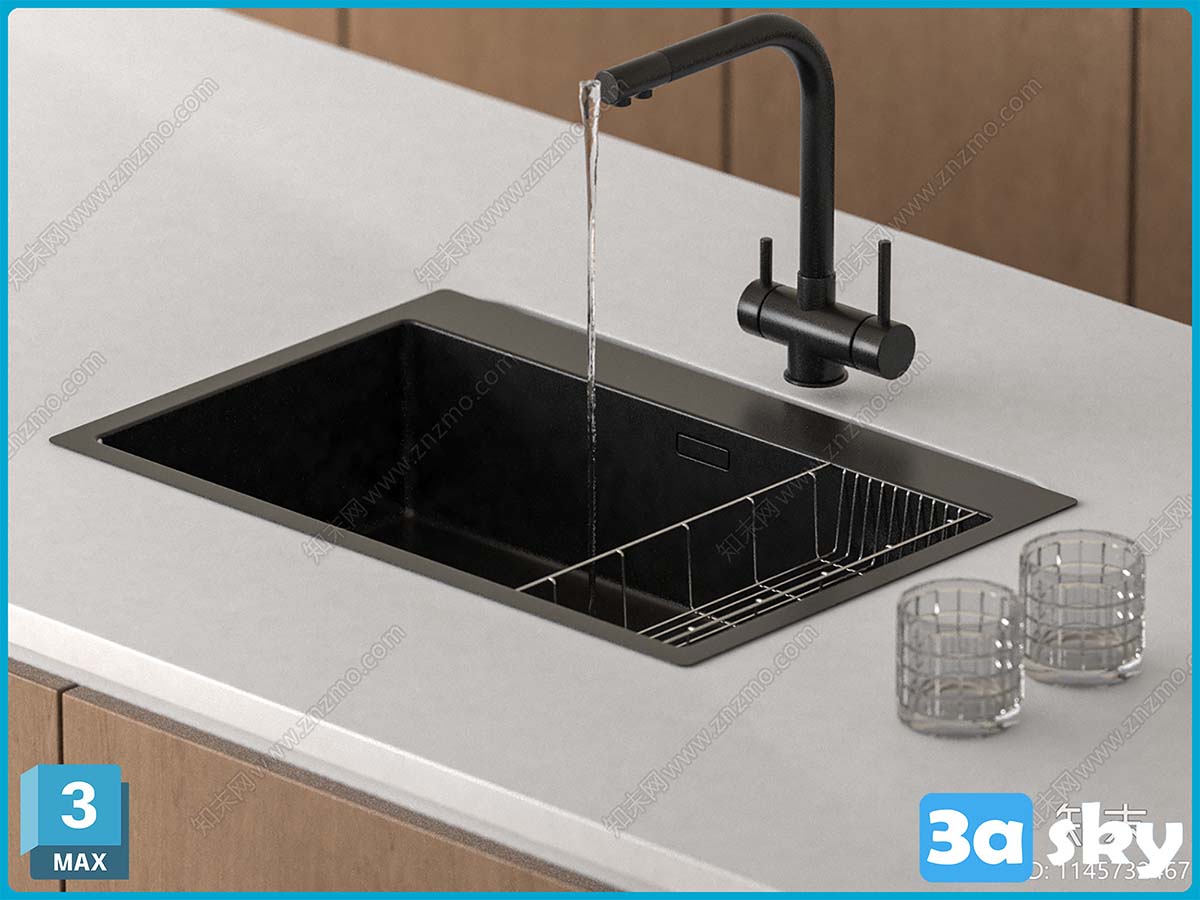 This image showcases a detailed 3D kitchen model created using 3DS MAX software. The design features modern kitchen elements and a realistic rendering of the space. Explore the intricate details and layout of this kitchen design for inspiration and visualization purposes.